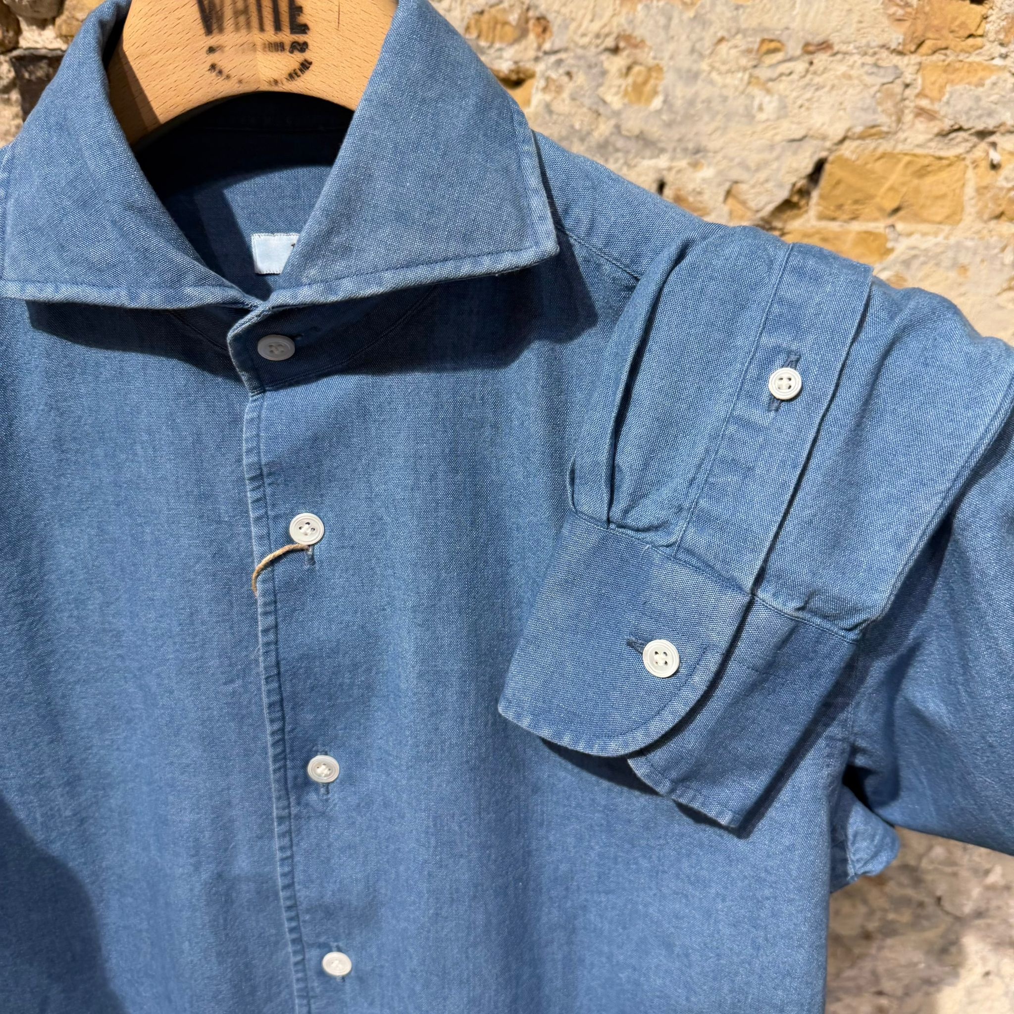 The washed blue tone gives it a relaxed, slightly textured look.