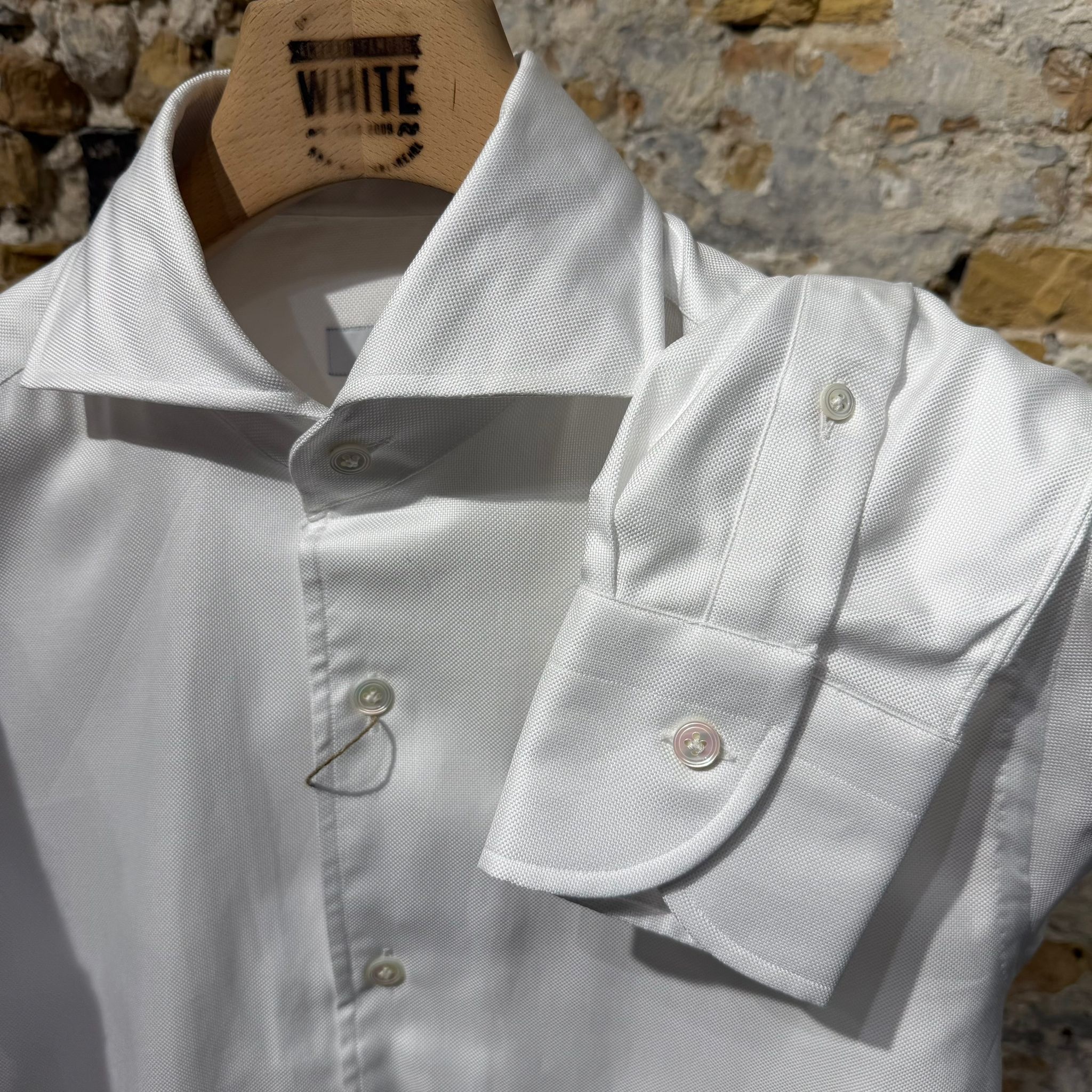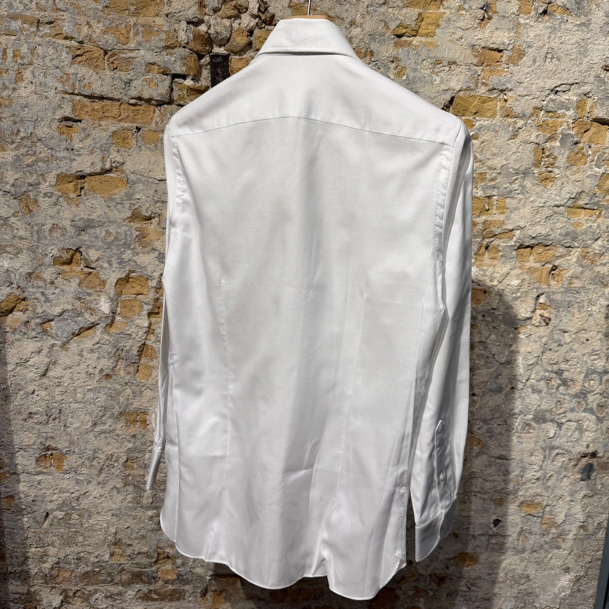 This crisp white shirt embodies timeless elegance and clean design.Crafted from fine textured cotton, it offers a refined look with a subtle depth.