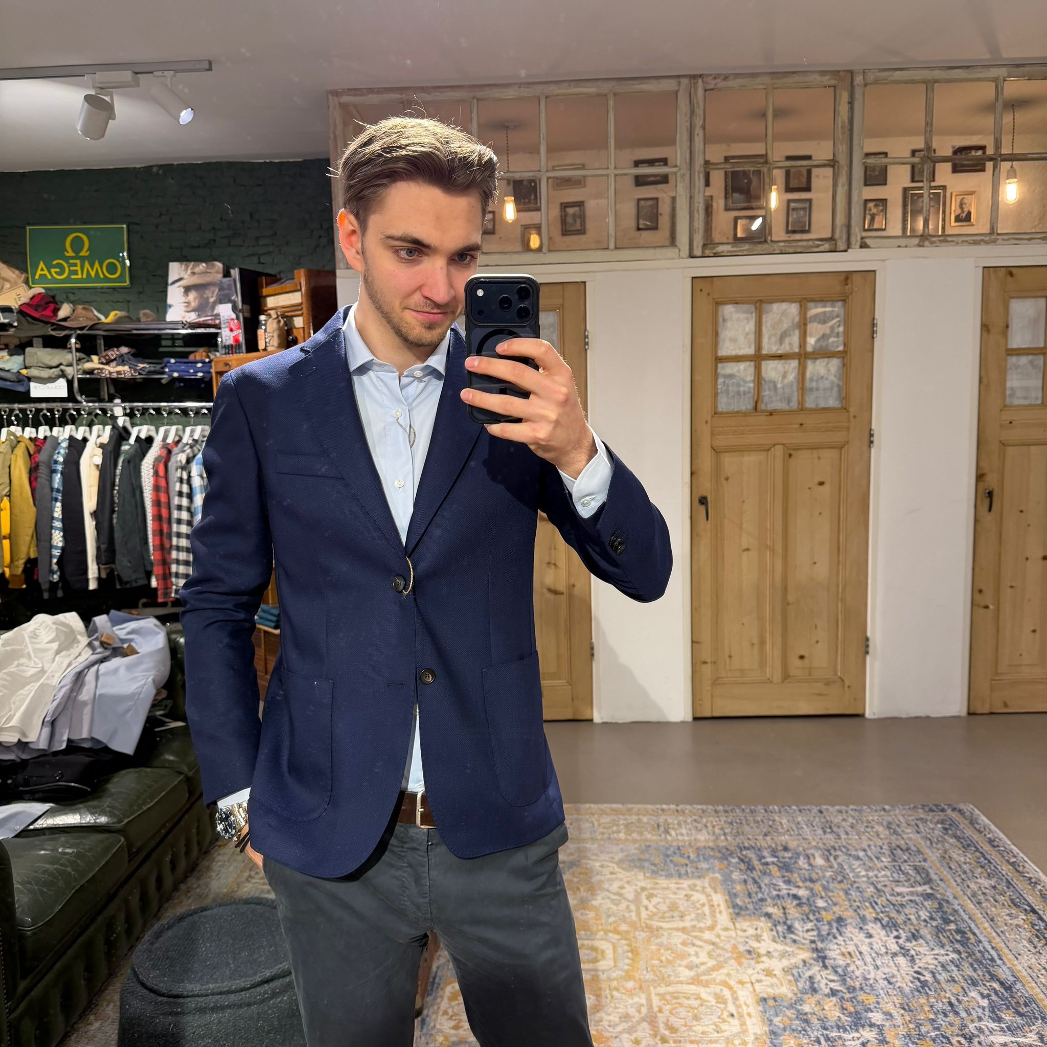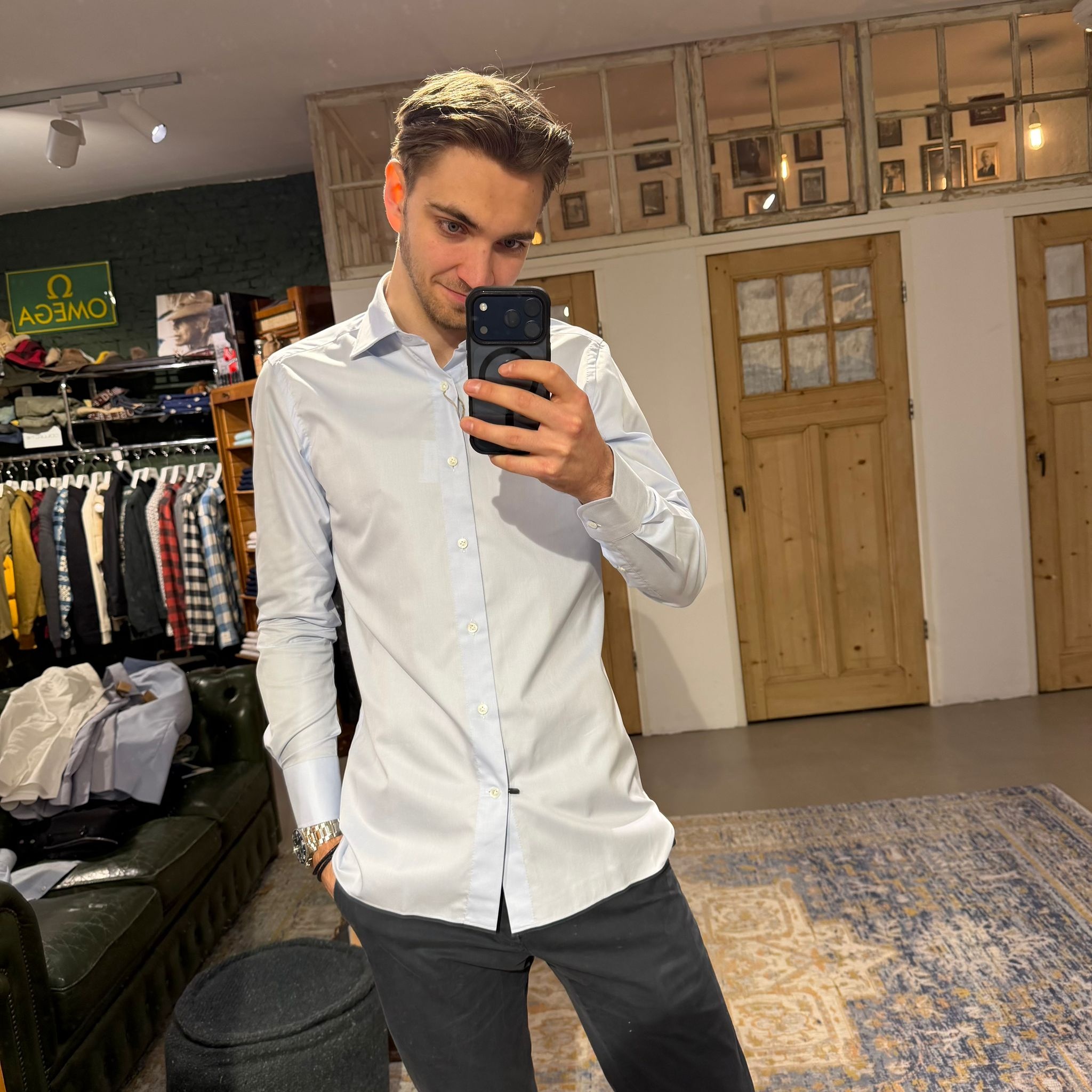 Light blue remains one of the most versatile colours in menswear — formal enough for business settings yet relaxed enough for smart casual outfits.