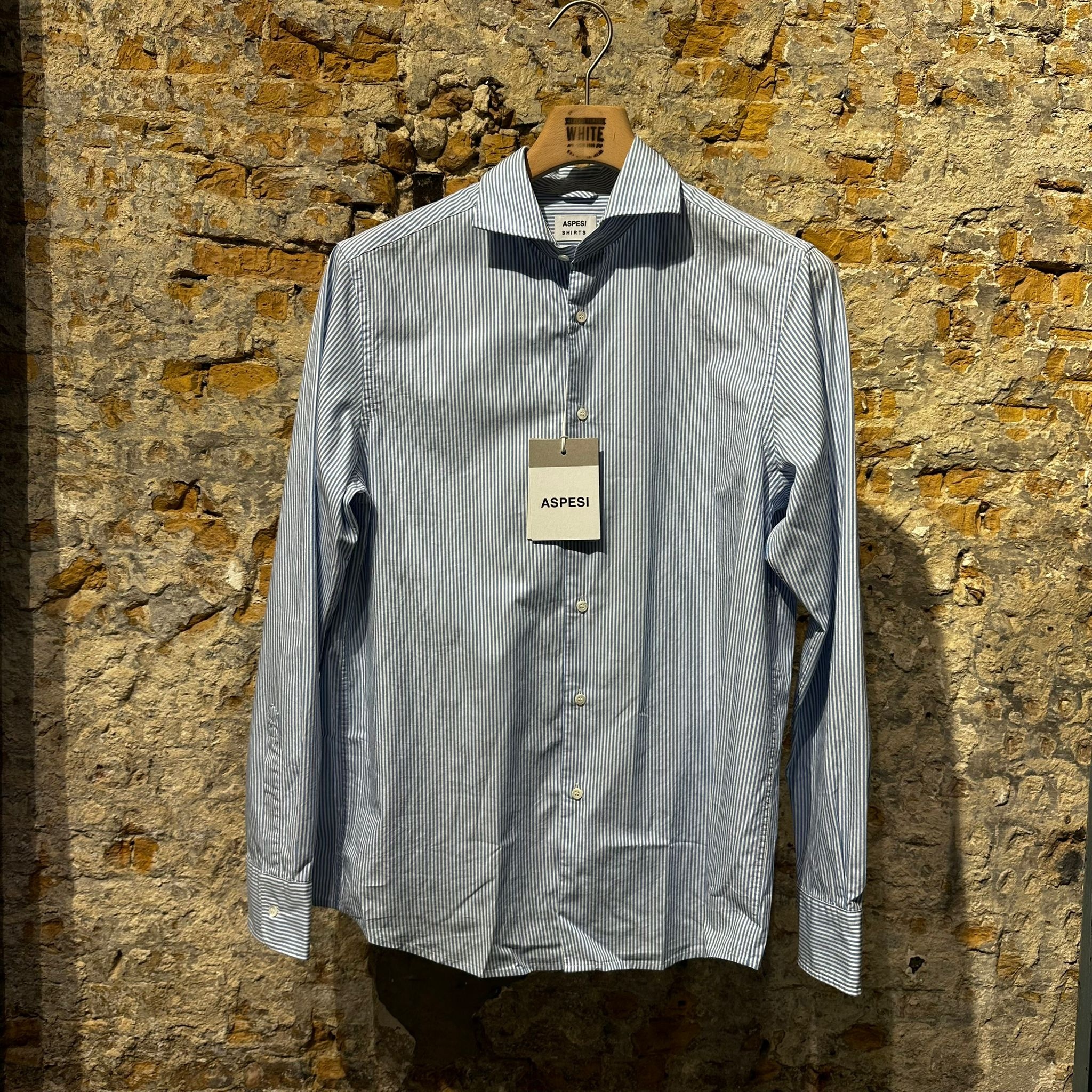 ASPESI Relaxed Striped Cotton Shirt Light Blue