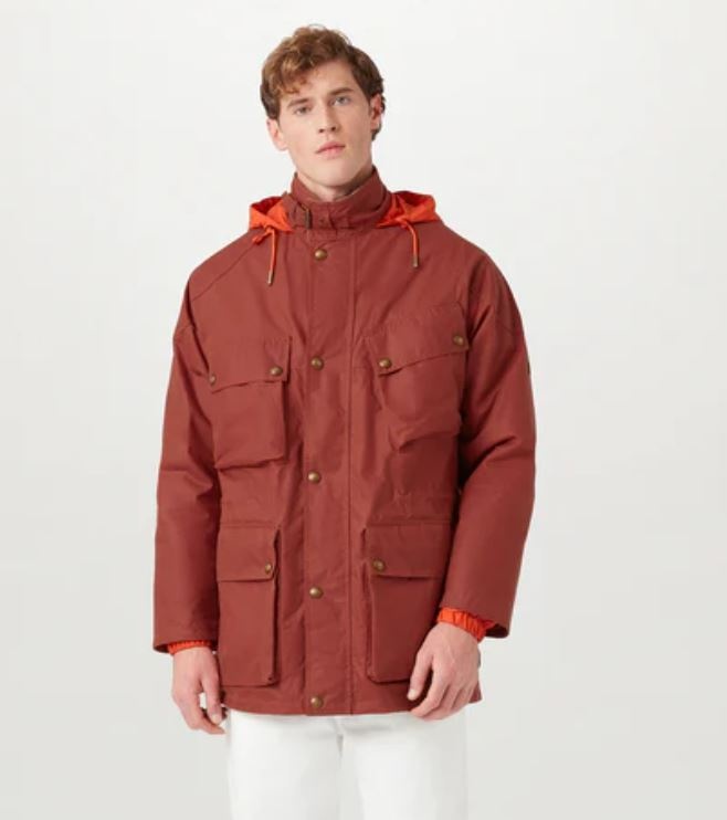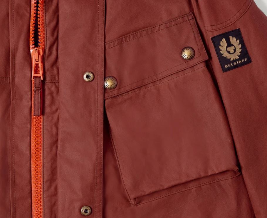 Inspired by the iconic 1970s Derwent jacket with Trialmaster detailing, this design has been created in collaboration with British menswear icon Nigel Cabourn. The ultimate outdoor piece, it is made from 6 oz. Burnt Orange waxed cotton for water and wind resistance and durability. It features a numbered plaque inside, marking that it is one of a highly limited run.