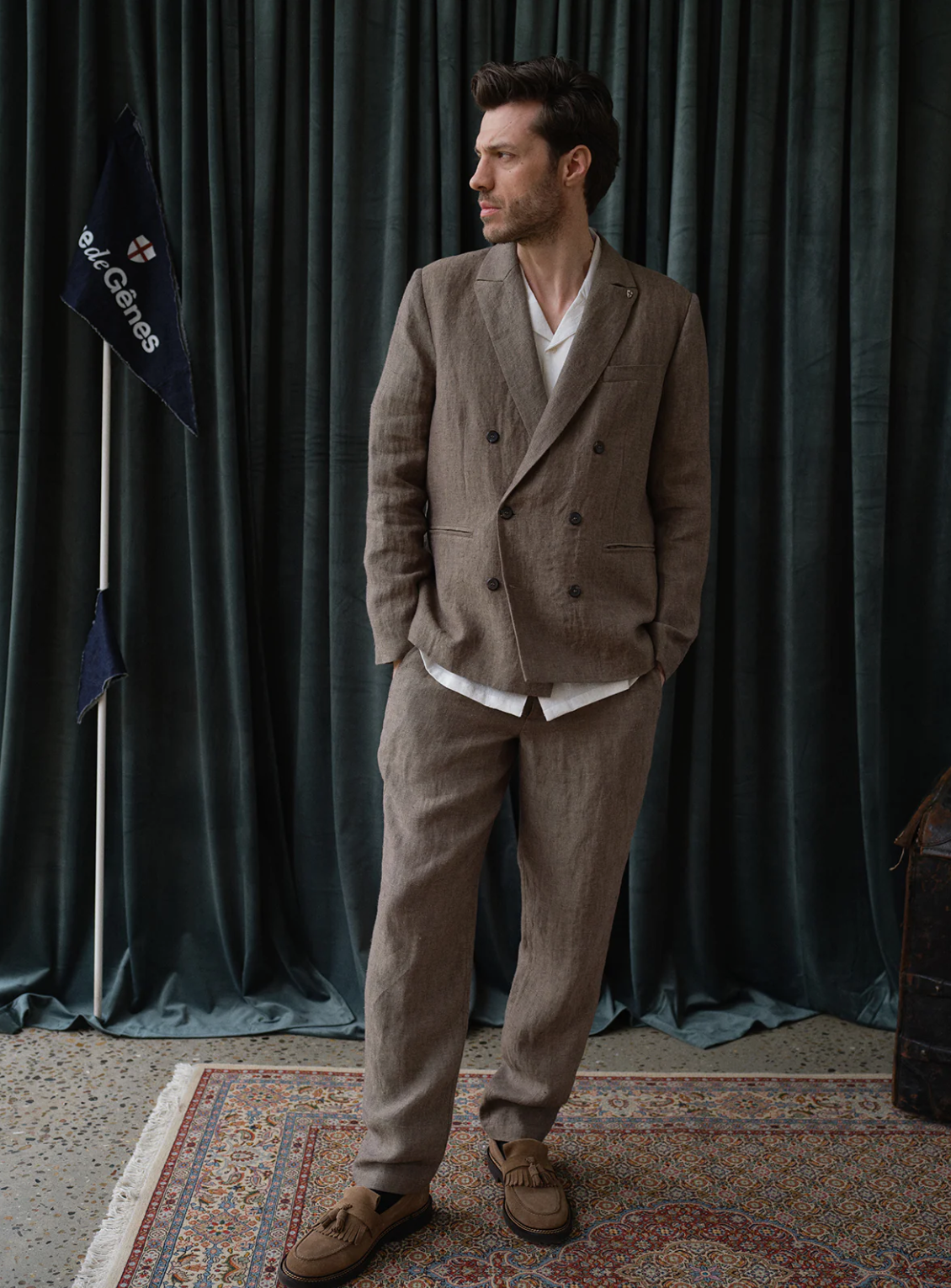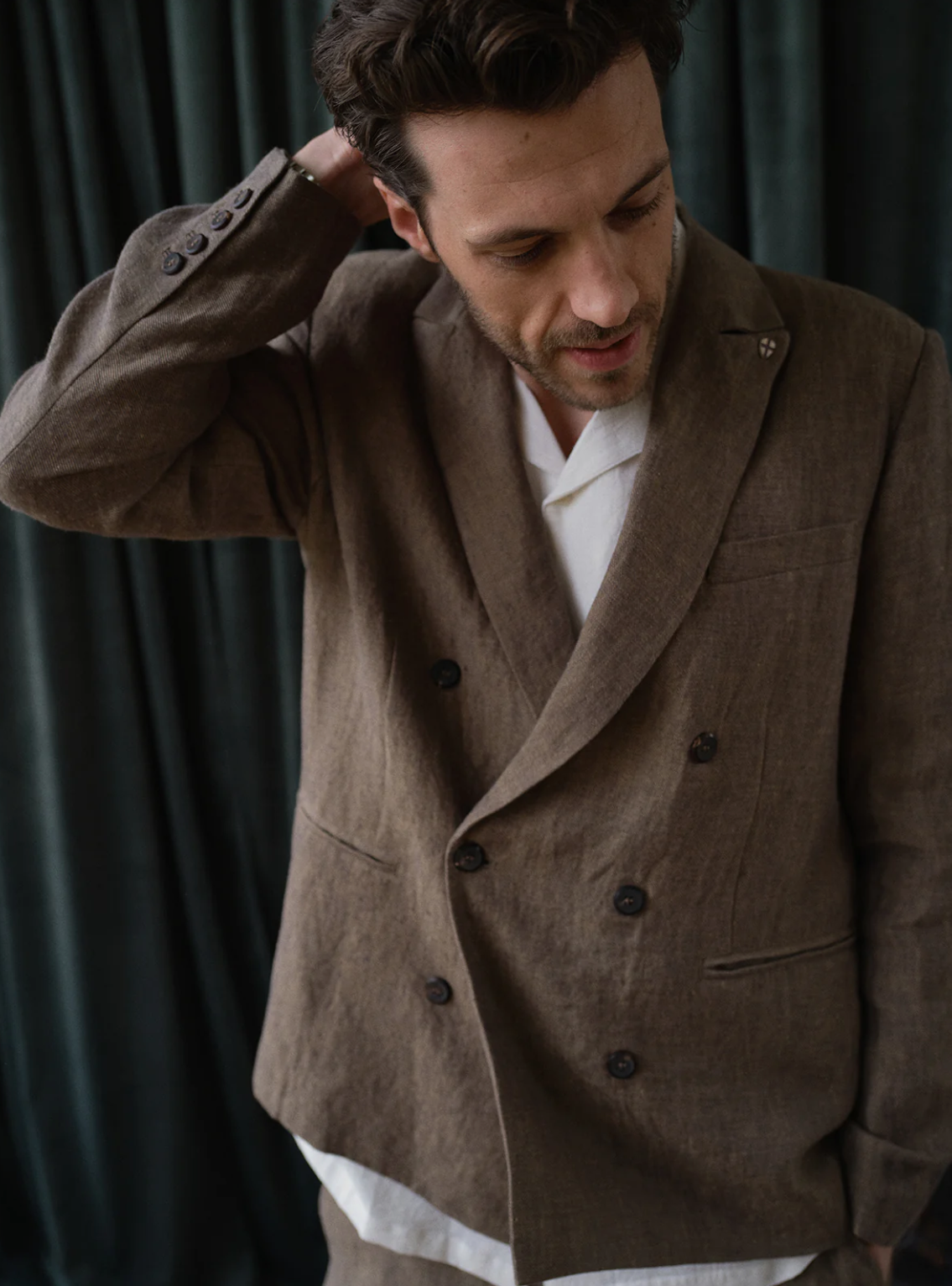 A modern interpretation of a menswear classic, this double-breasted blazer combines relaxed tailoring with refined Mediterranean character. Cut in an easy, relaxed fit and left unconstructed for natural movement, it delivers effortless structure without stiffness.