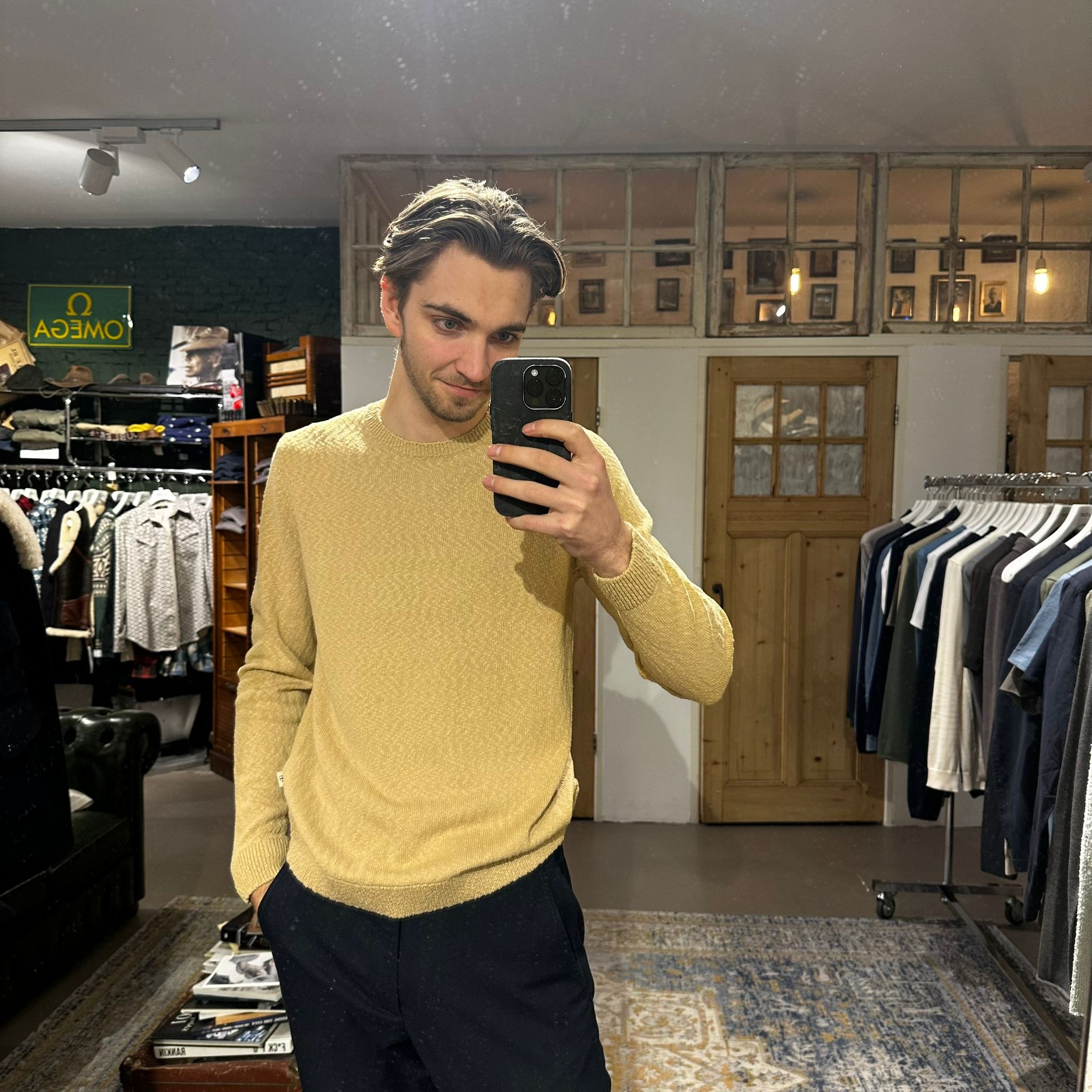 Blue de Genes BGyale Slubby Crewneck Knit Pale Khaki