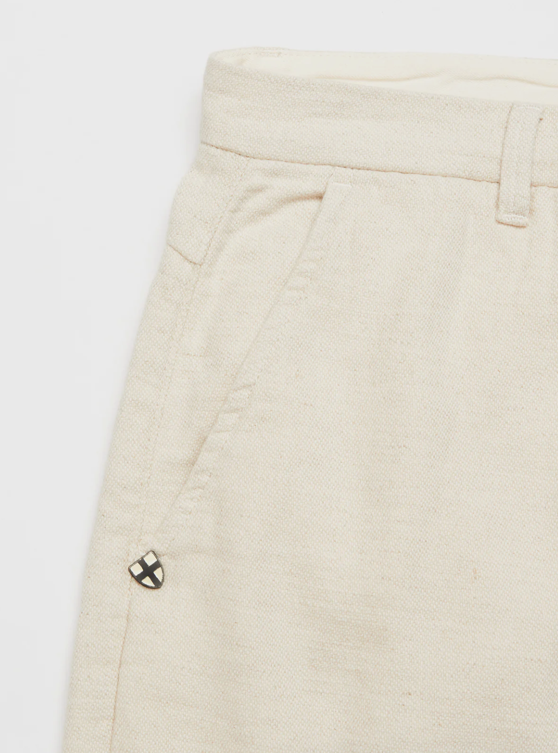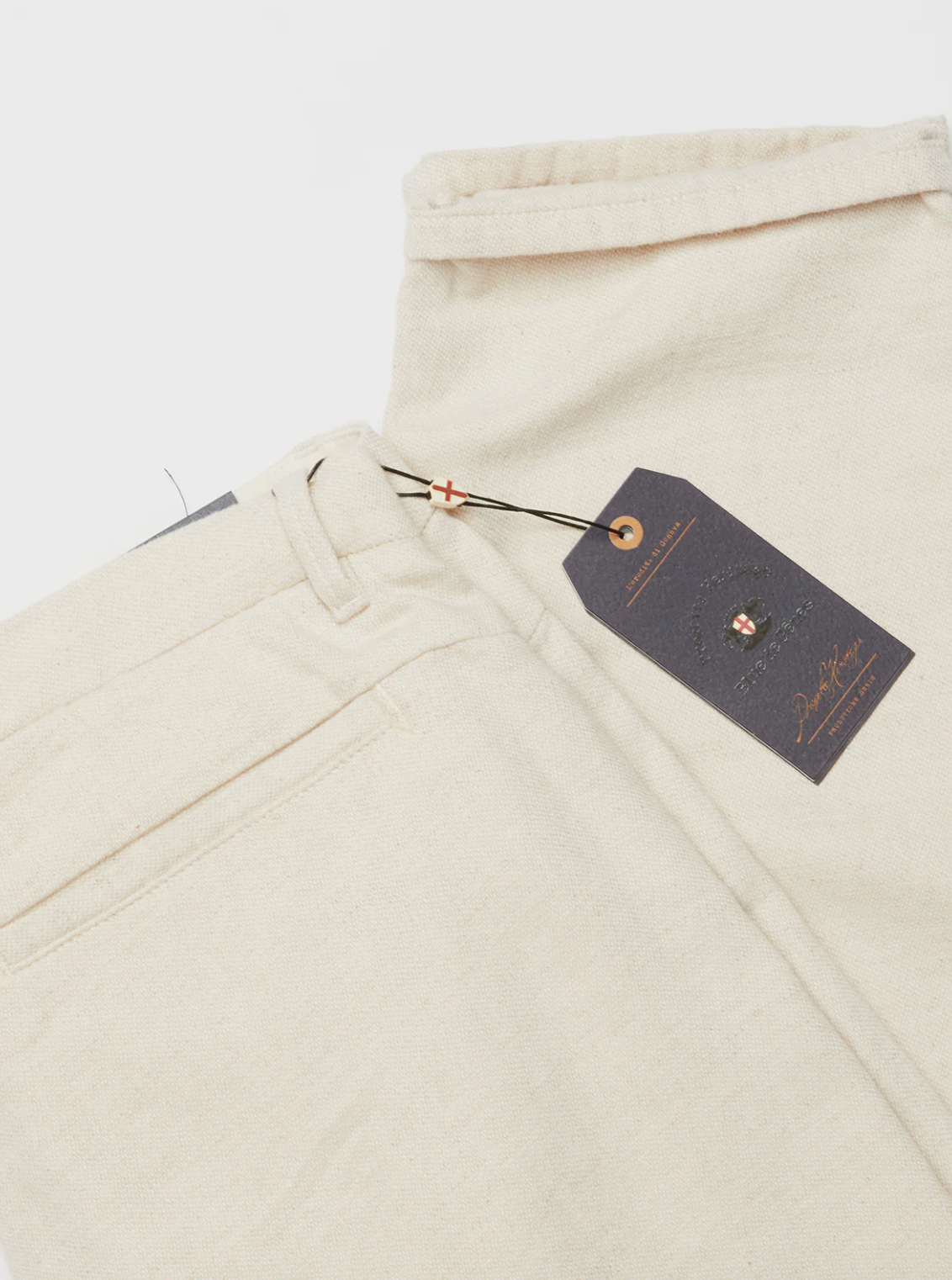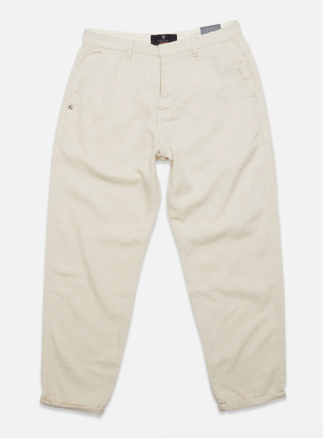 Our Palto Chino has a uniquely relaxed, barrel-shaped fit, tapering at the hem. Single-facing front pleats, button closure and back welt pockets. Cut from a soft cotton/linen blend quality with a nice structure and a soft hand-feel.