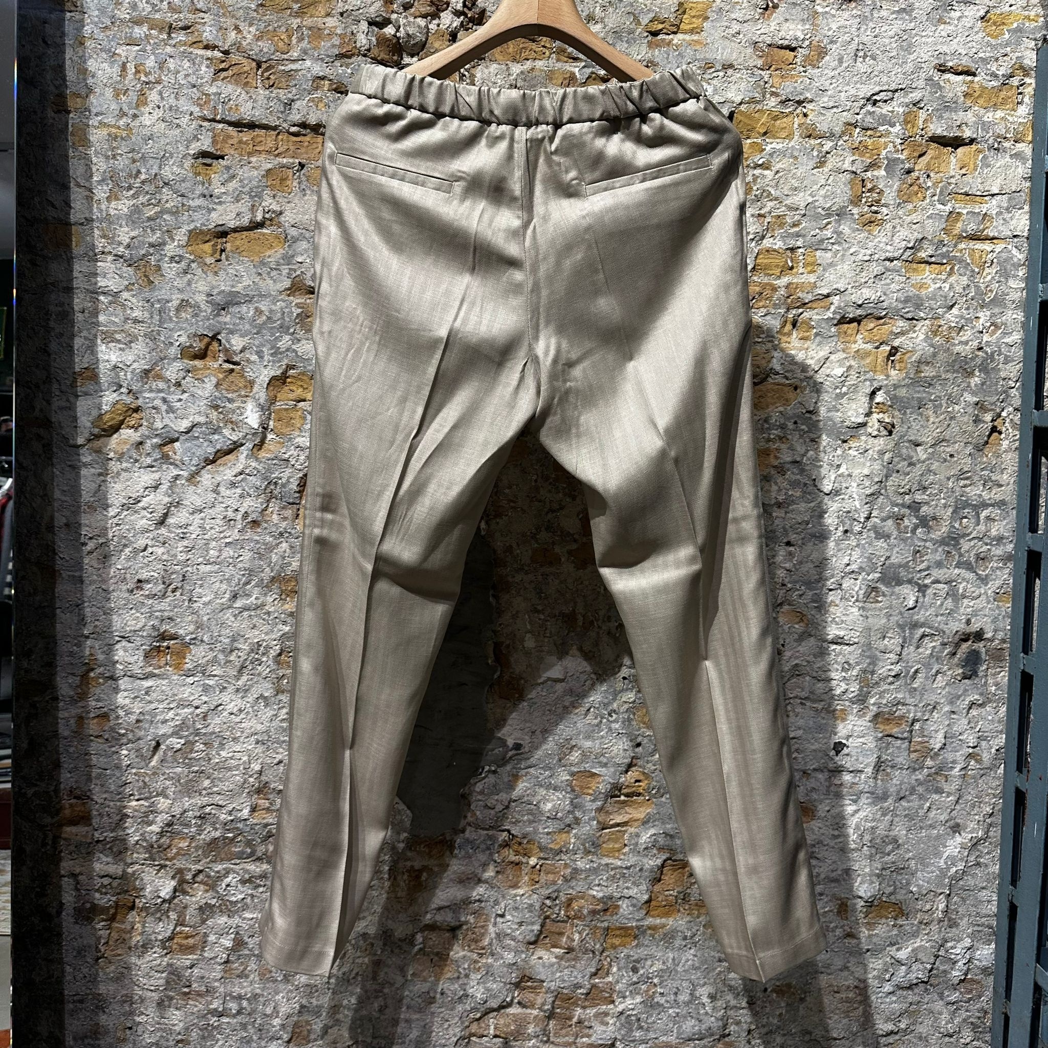 These trousers combine tailored elegance with relaxed comfort.The soft beige tone gives them a refined and versatile look.