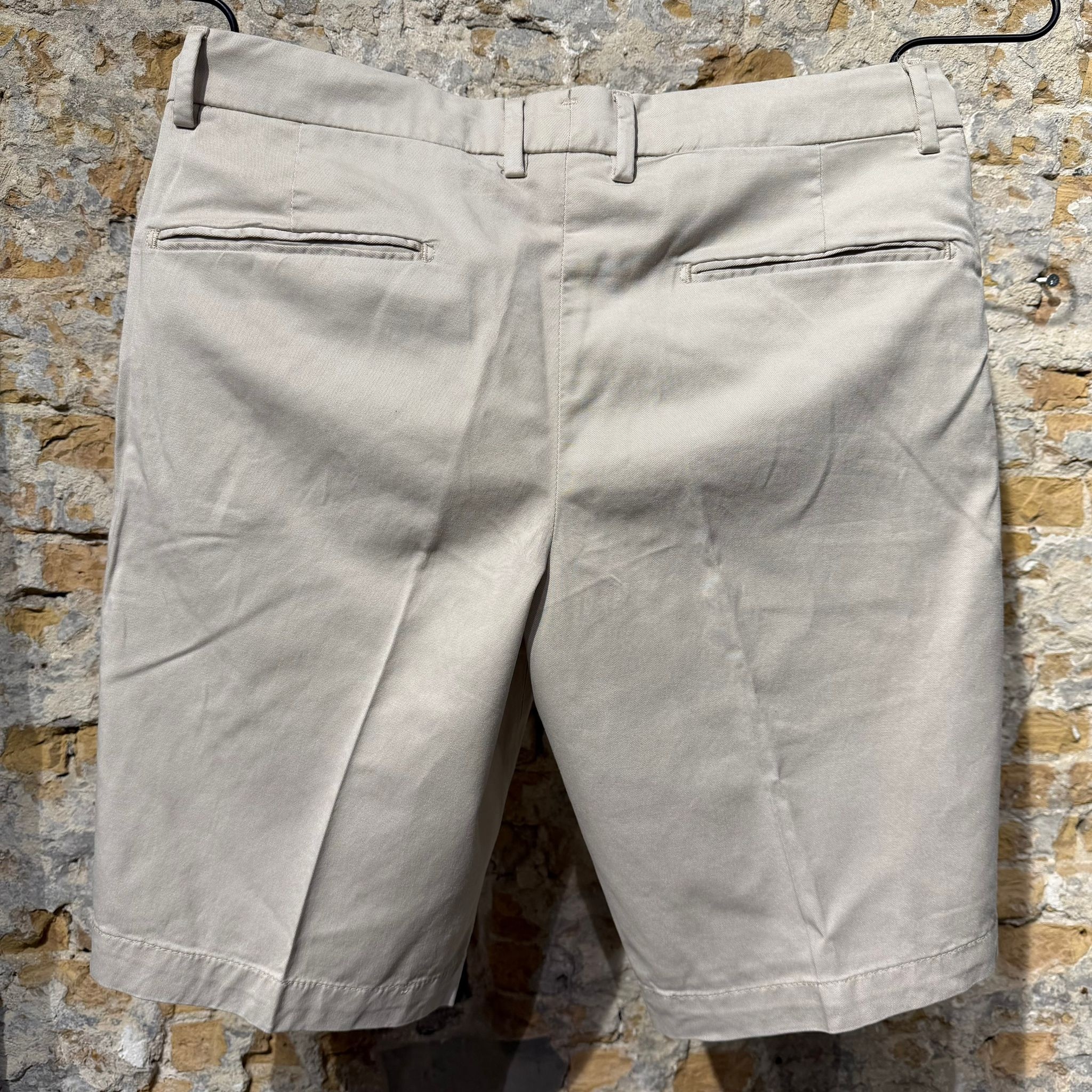 Tailored shorts in a refined cotton fabric, offering a clean and structured silhouette with a soft, comfortable feel. Designed with a classic waistband, belt loops, and a button closure with zip fly. The minimalist front is complemented by discreet side pockets, while the back features neat welt pockets for a polished finish. Lightweight and breathable, these shorts are ideal for warm-weather dressing, balancing casual ease with a sharp, elevated look.