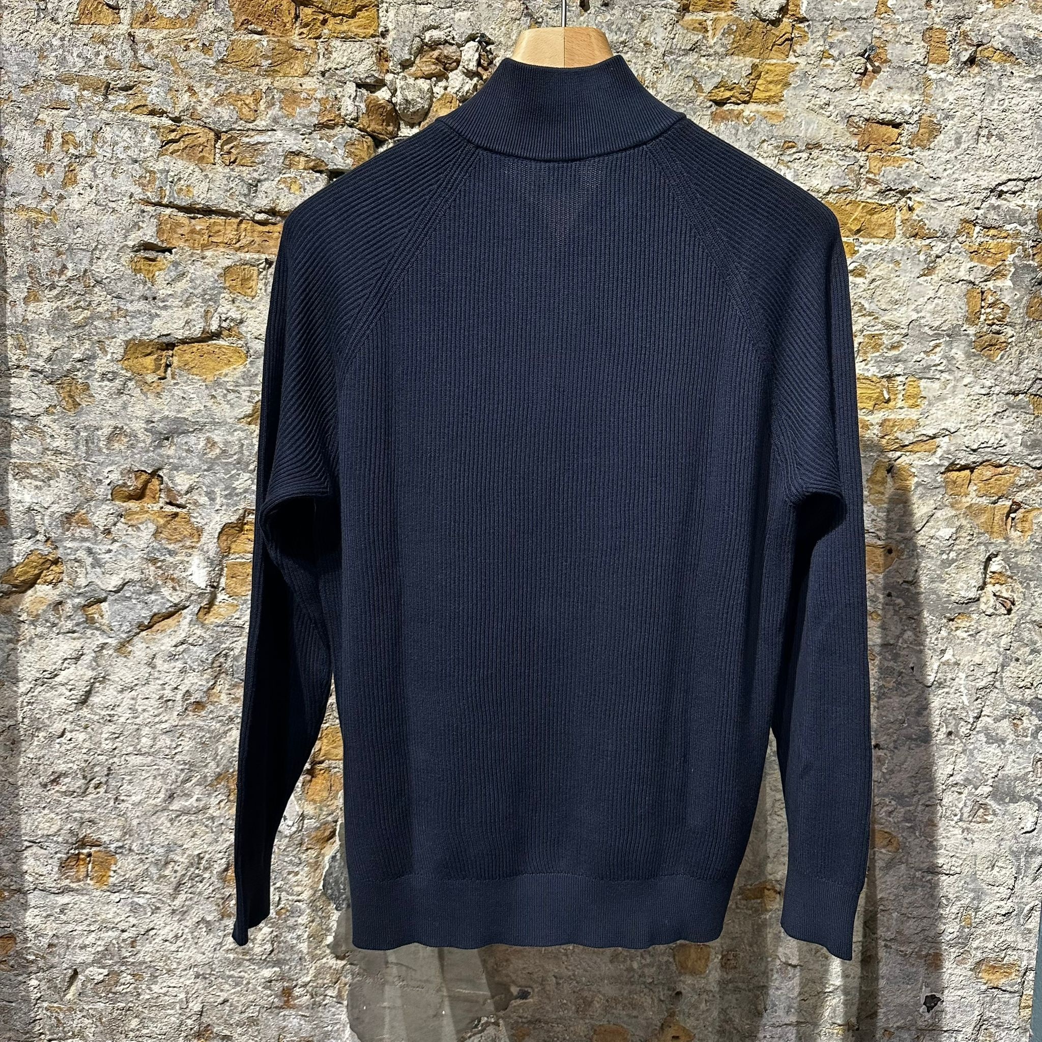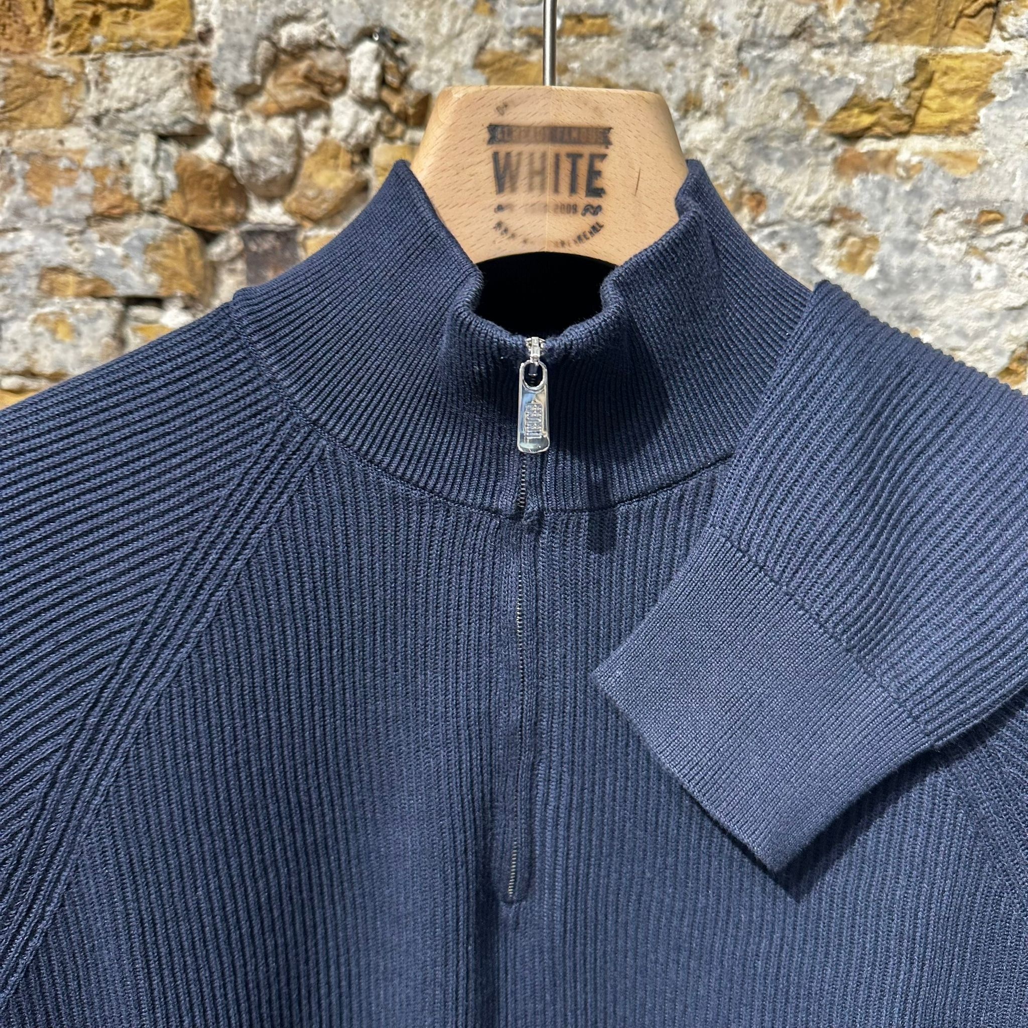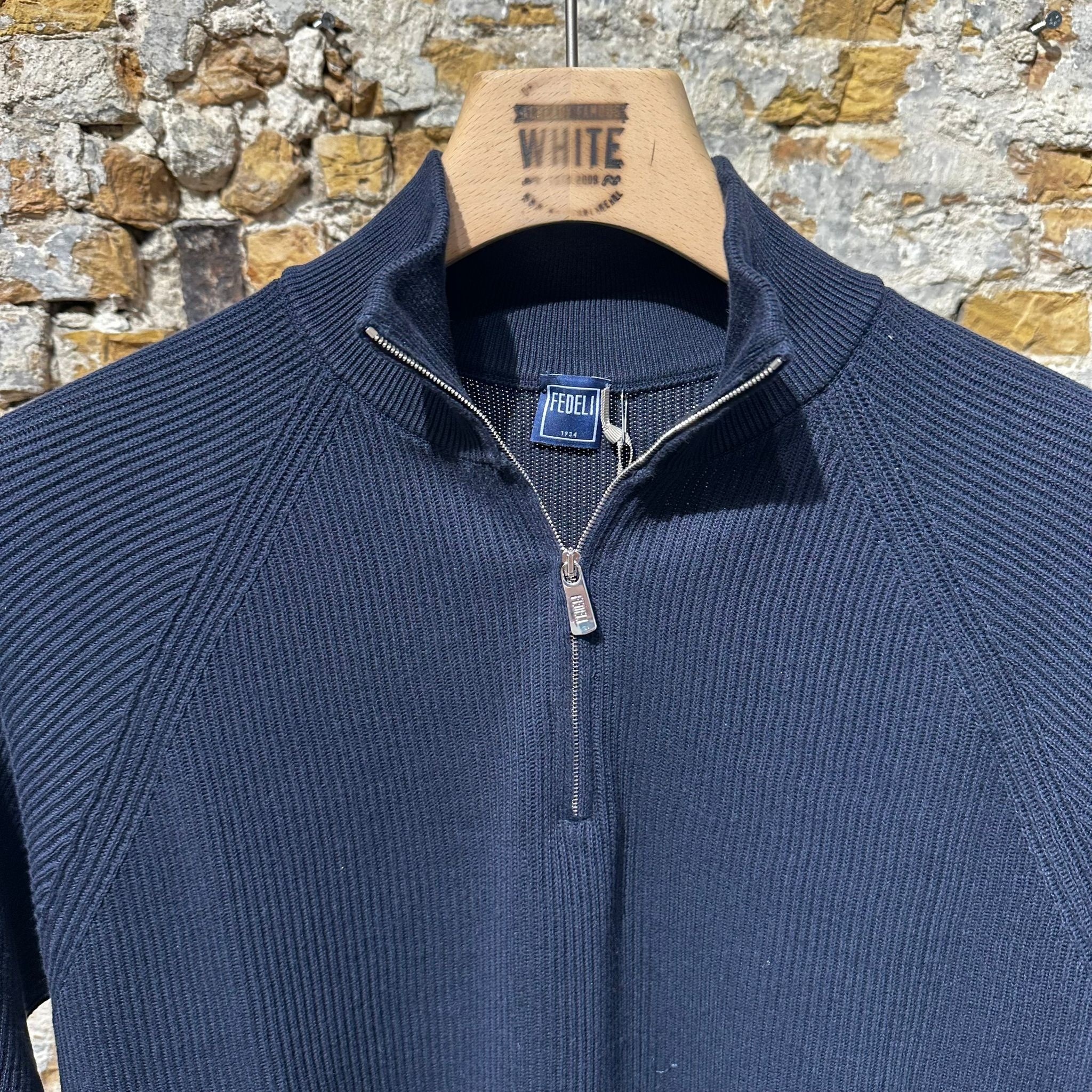 Fedeli Luxury Ribbed Quarter-Zip Navy Blue