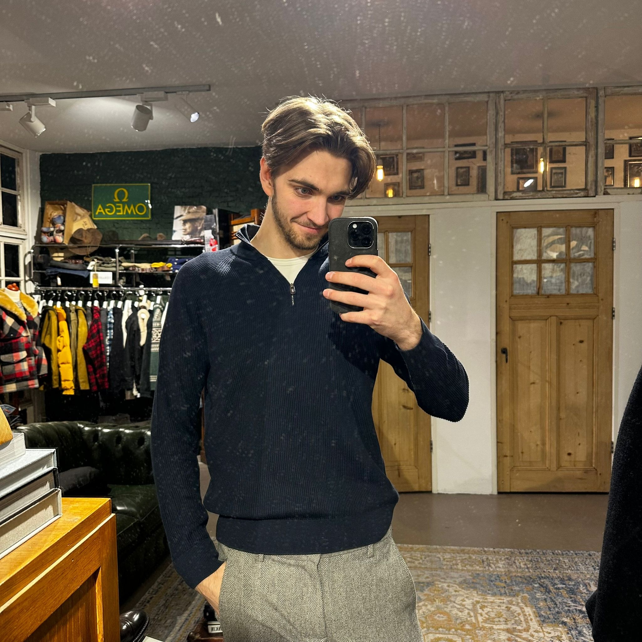 This zip-neck sweater comes from Fedeli, a name synonymous with uncompromising Italian craftsmanship.Knitted in Italy from exceptional long-staple cotton, it has a dense, refined rib that gives natural structure, durability, and a clean silhouette.