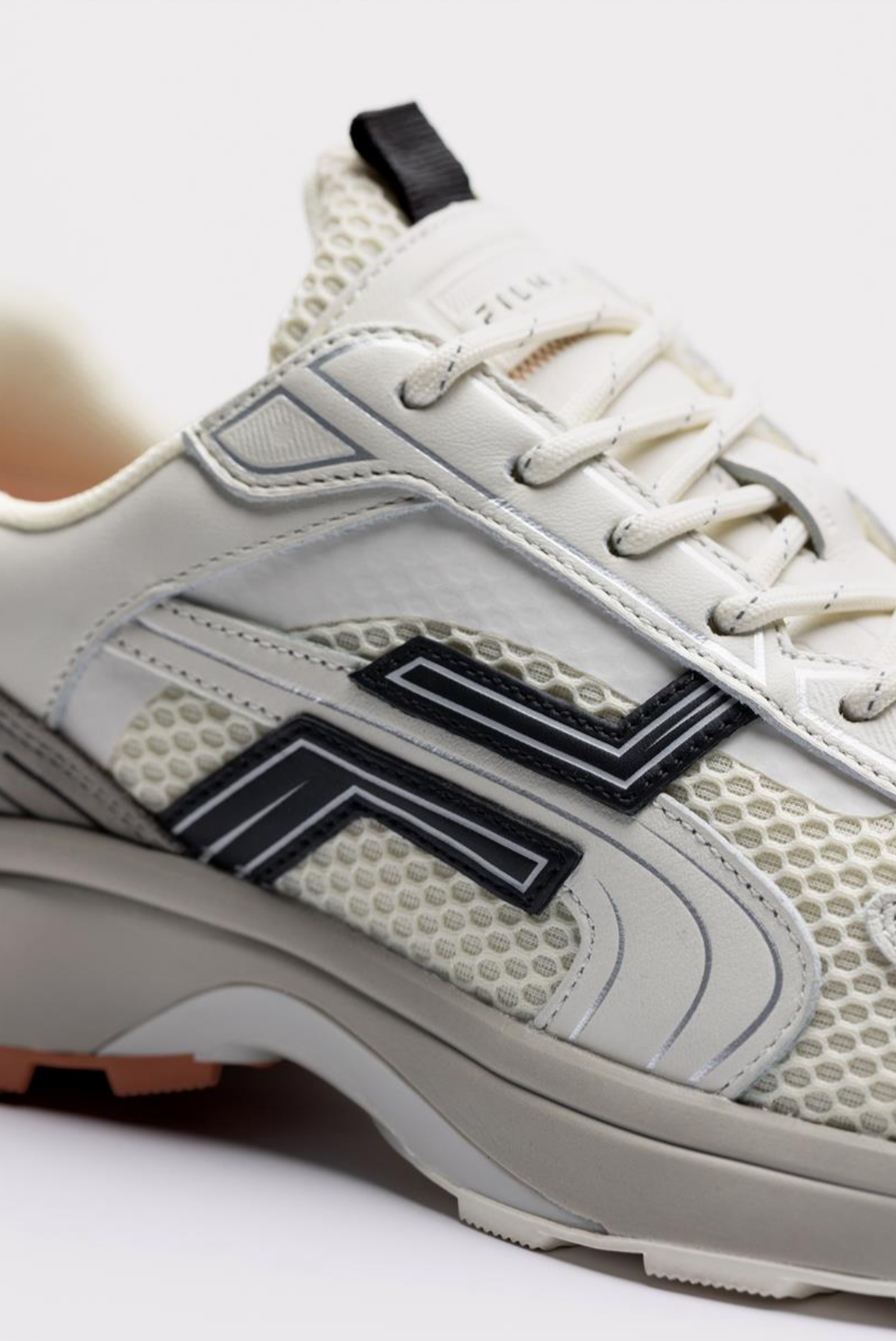 The YALI (36° 40' 0’’ N, 27° 8' 0’’ E), our innovative Y2K-inspired runner, combines bold design with sustainability. Available in a Off White colourway, this sneaker showcases striking mesh on the upper, paired with ‘raw edges’ achieved through cutting-edge rubber printing. These design elements give the YALI its unique, futuristic finish. Crafted with precision, the branding is either printed or debossed on the premium suede and LWG-certified leather – both in brown. The coordinates of YALI are embossed on the tongue loop, adding a personal signature to the design. For enhanced comfort, ventholes in the tongue provide breathability. Reflective laces complete the look of this futuristic Filmore men’s sneaker.The YALI runner is made with sustainable materials. The personalised sole is partly made from sugarcane, giving it a unique texture. Experience the future of footwear with the YALI, where style meets eco-conscious innovation.
