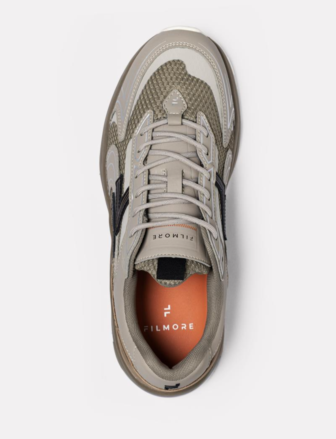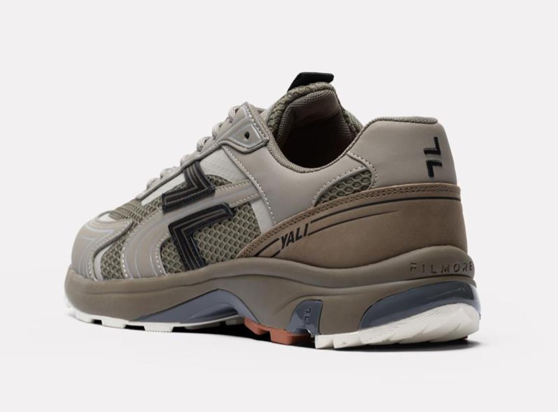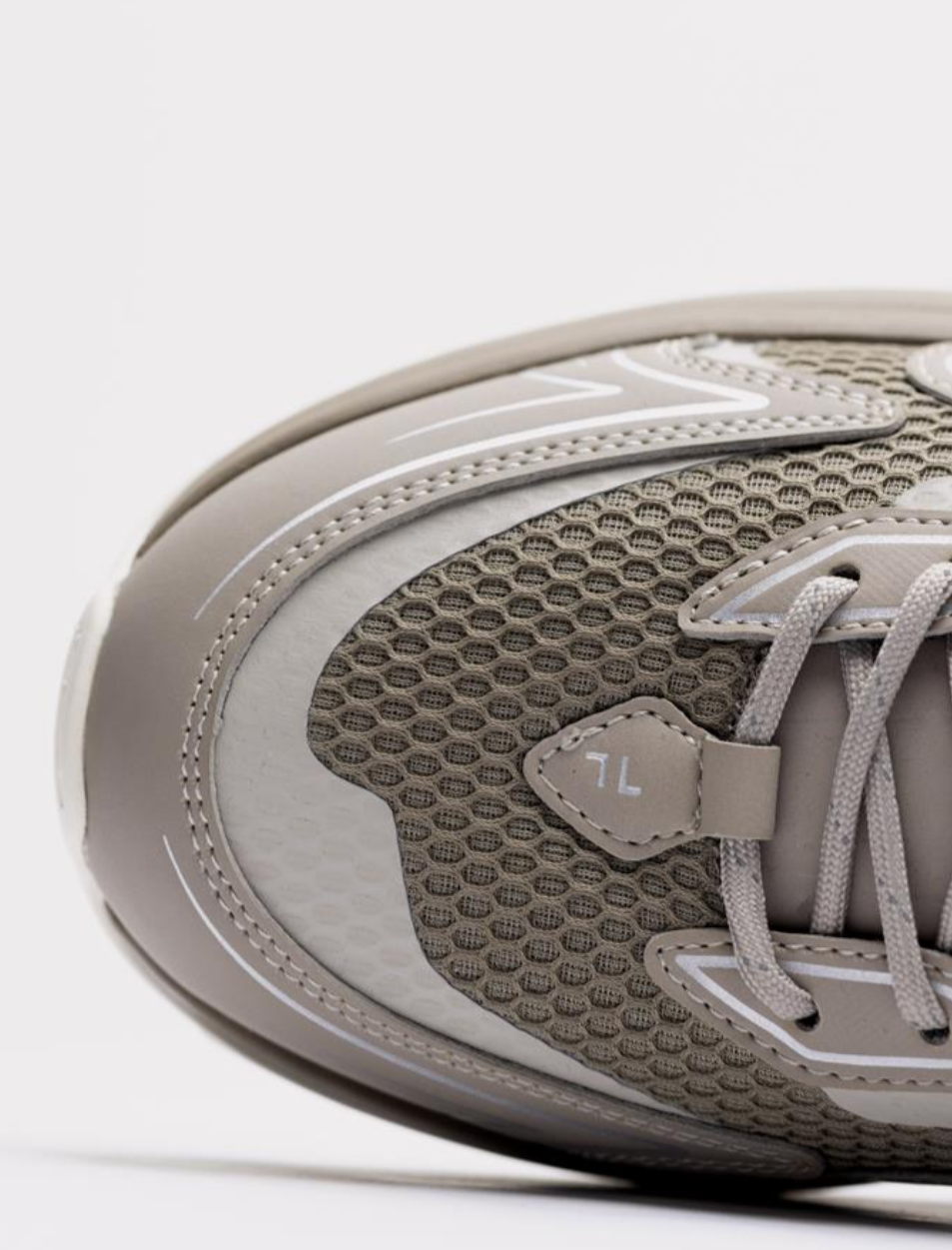 The YALI (36° 40' 0’’ N, 27° 8' 0’’ E), our innovative Y2K-inspired runner, combines bold design with sustainability. Available in a Taupe colourway, this sneaker showcases striking mesh on the upper, paired with ‘raw edges’ achieved through cutting-edge rubber printing. These design elements give the YALI its unique, futuristic finish. Crafted with precision, the branding is either printed or debossed on the premium suede and LWG-certified leather – both in brown. The coordinates of YALI are embossed on the tongue loop, adding a personal signature to the design. For enhanced comfort, ventholes in the tongue provide breathability. Reflective laces complete the look of this futuristic Filmore men’s sneaker.The YALI runner is made with sustainable materials. The personalised sole is partly made from sugarcane, giving it a unique texture. Experience the future of footwear with the YALI, where style meets eco-conscious innovation.