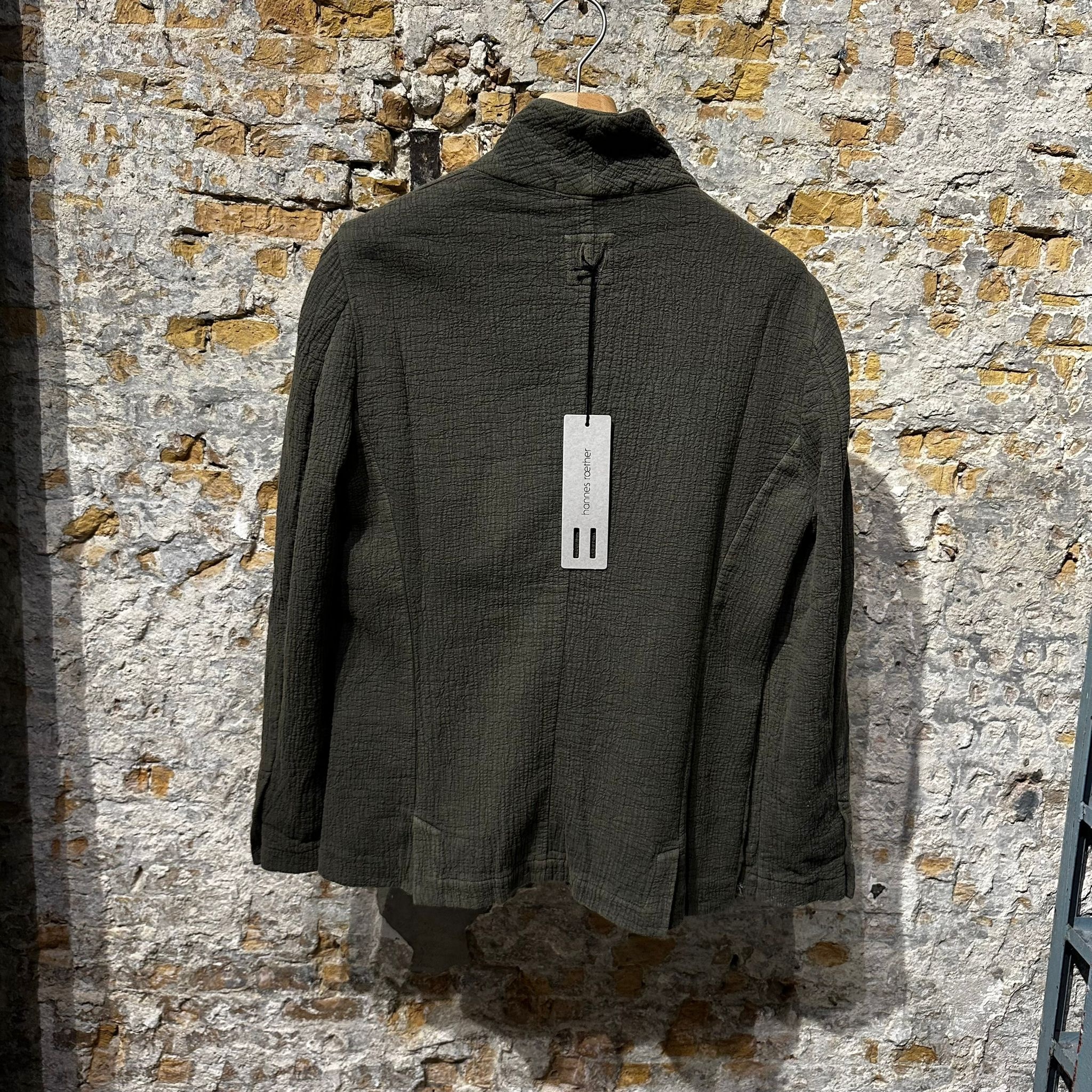 This jacket combines a relaxed silhouette with a distinctive textured fabric.