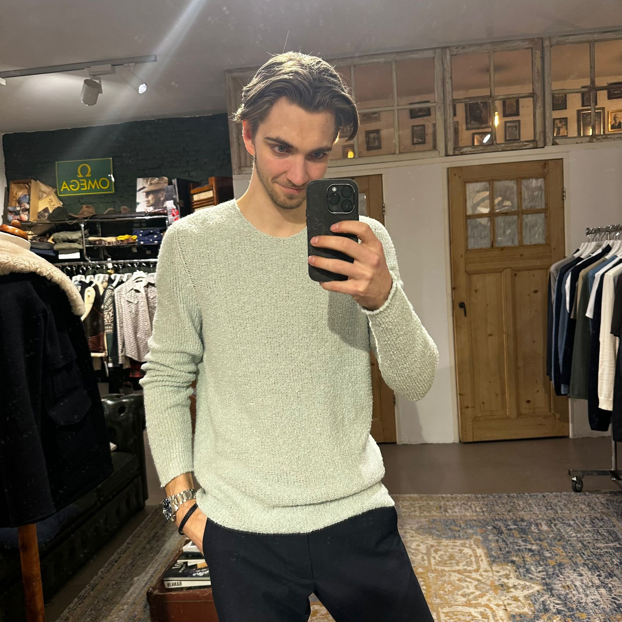 This is a perfect summer sweater, made in a soft, airy knit that feels light and comfortable against the skin.