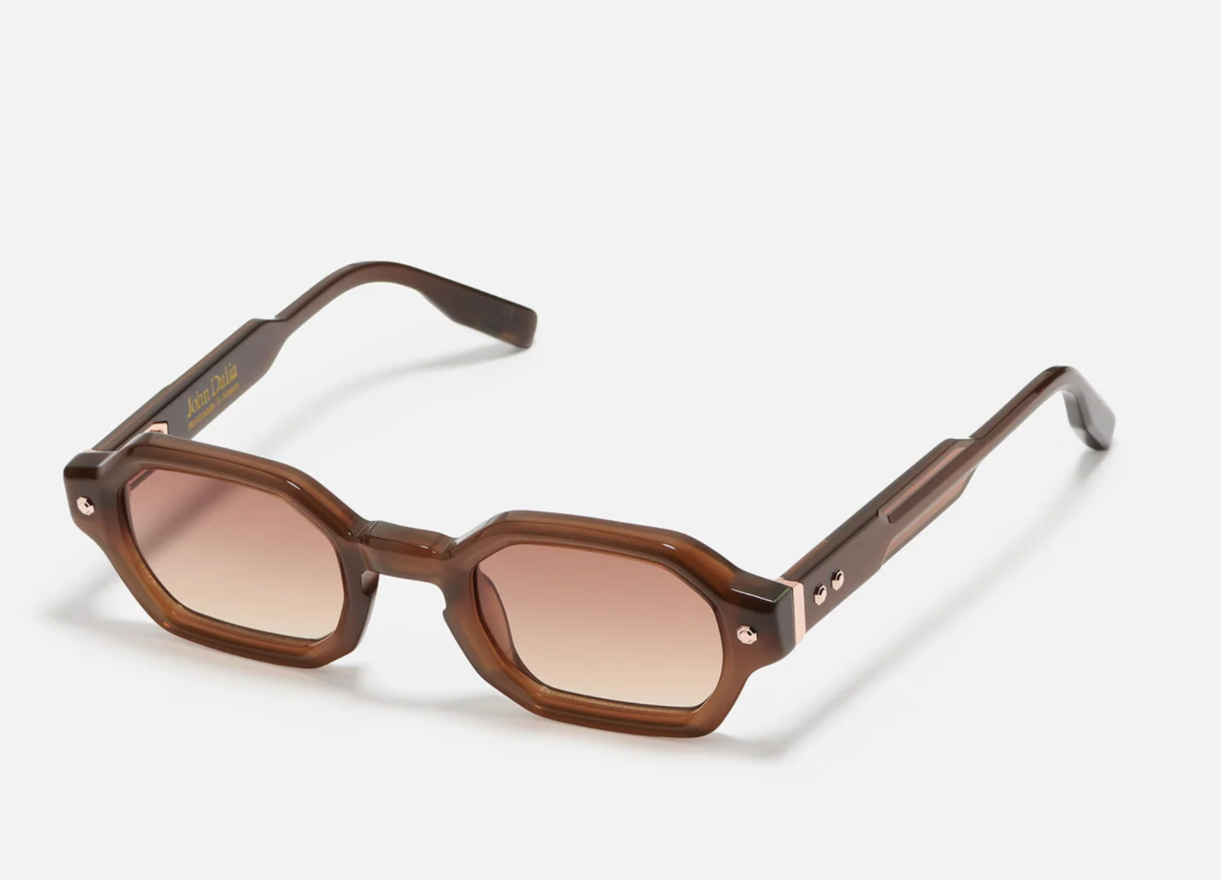 Project 05 is a unisex frame crafted from an 8mm acetate sheet. It features a rectangular shape, a signature John Dalia armature and hinges, as well as decorative pins.