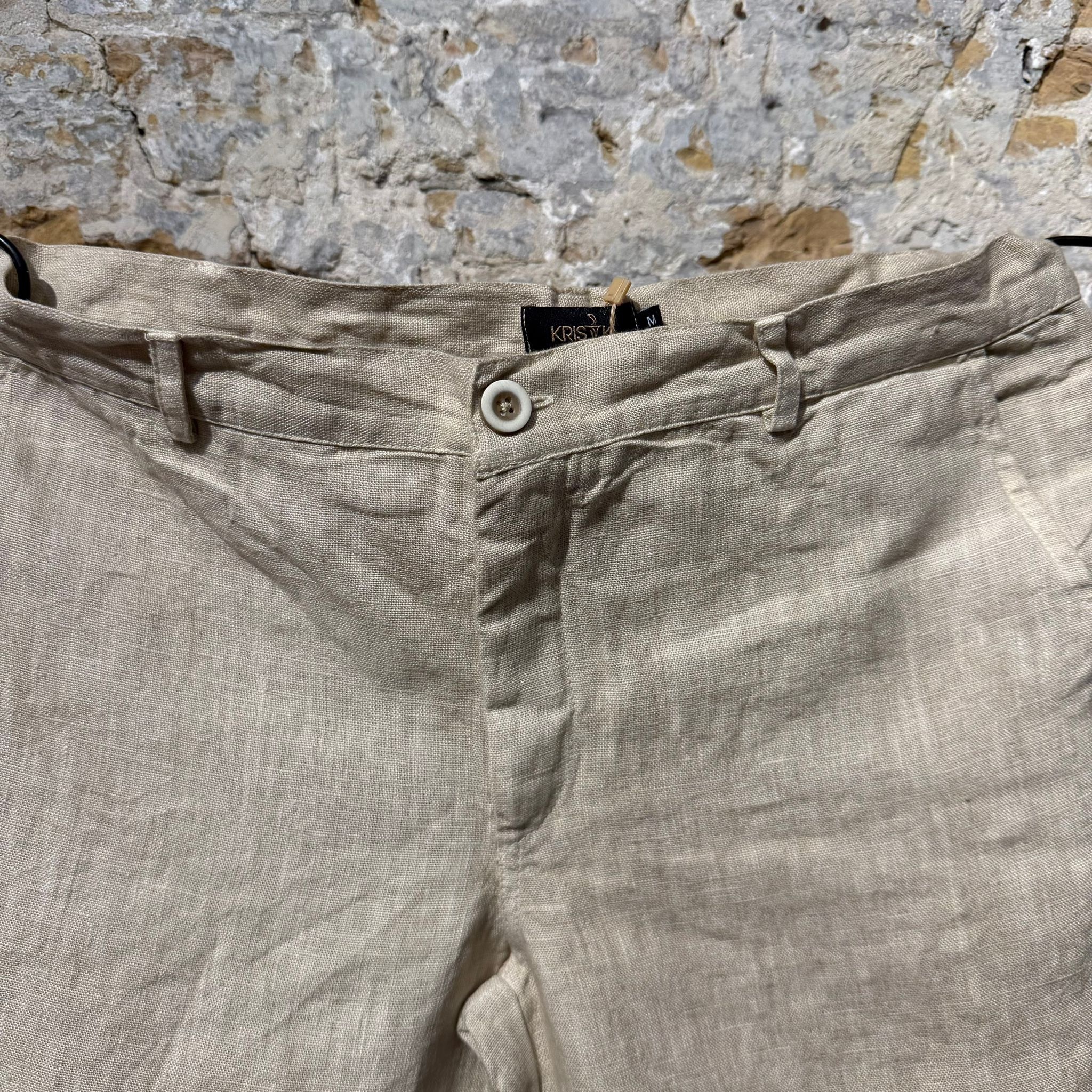 The tone sits in that warm beige range — clean, understated, and incredibly adaptable. It gives off a relaxed, sun-washed feel while still looking polished enough to elevate a simple outfit. The cut is tailored but not restrictive, offering a comfortable fit through the waist and a straight, easy leg that keeps everything balanced.