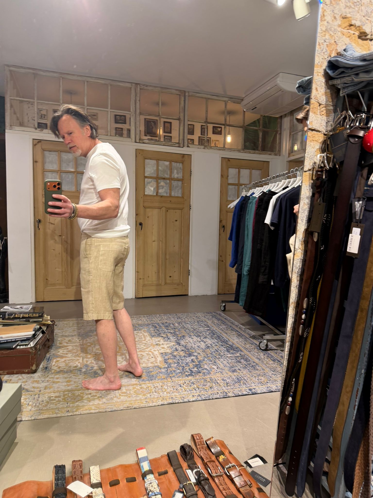 These shorts follow the same refined, easygoing line as the rest of the set, built from lightweight linen that feels breathable and natural against the skin. The fabric carries a soft texture with a subtle, lived-in look that only gets better with wear.