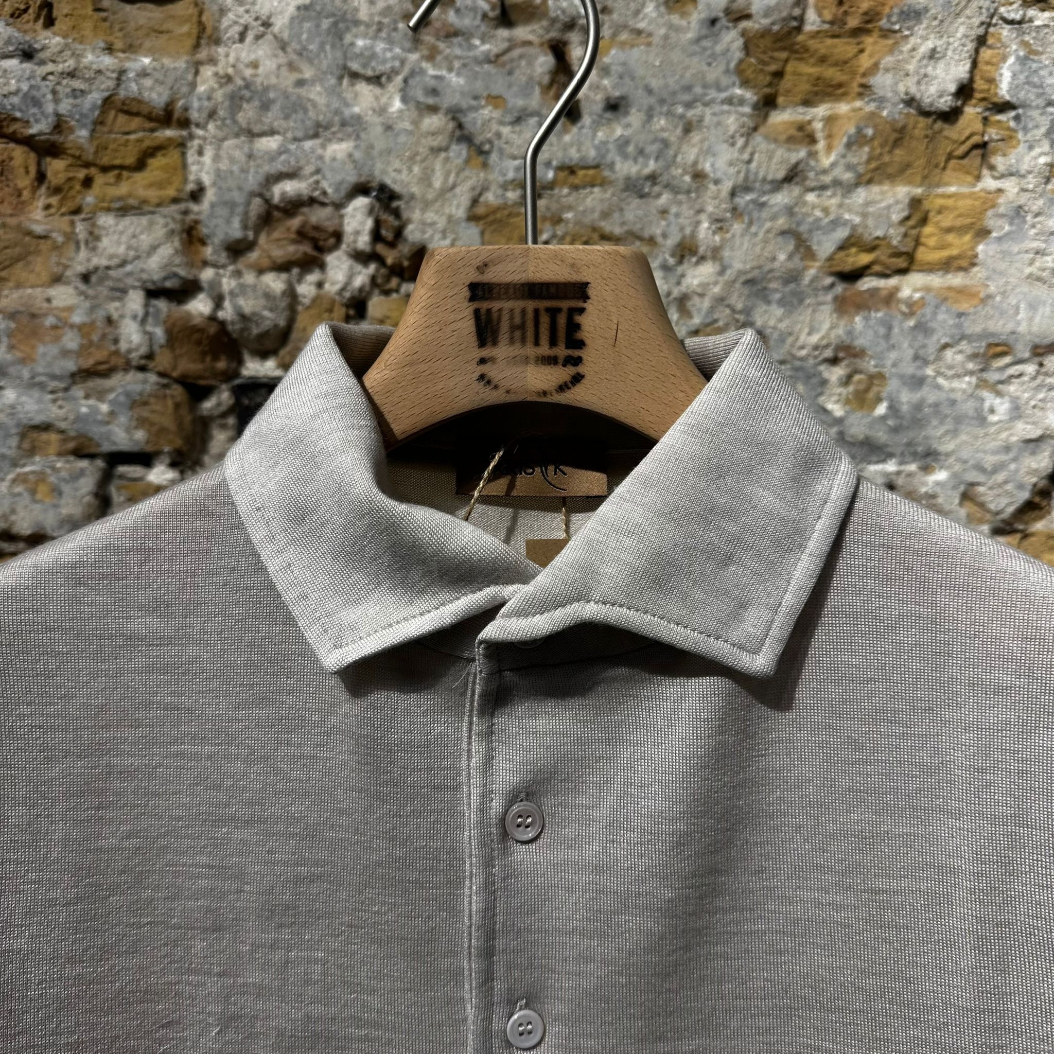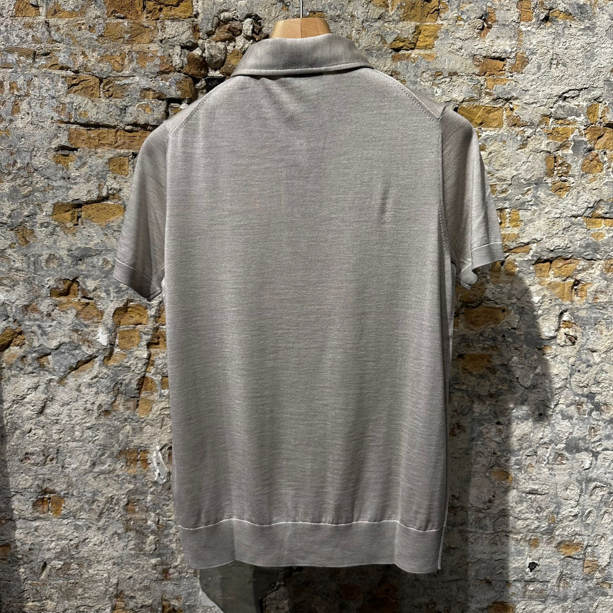 This refined short-sleeve polo is designed with an elegant one-piece collar, creating a clean and seamless neckline.The subtle button-down detail keeps the collar perfectly in place while maintaining a sharp, structured look.