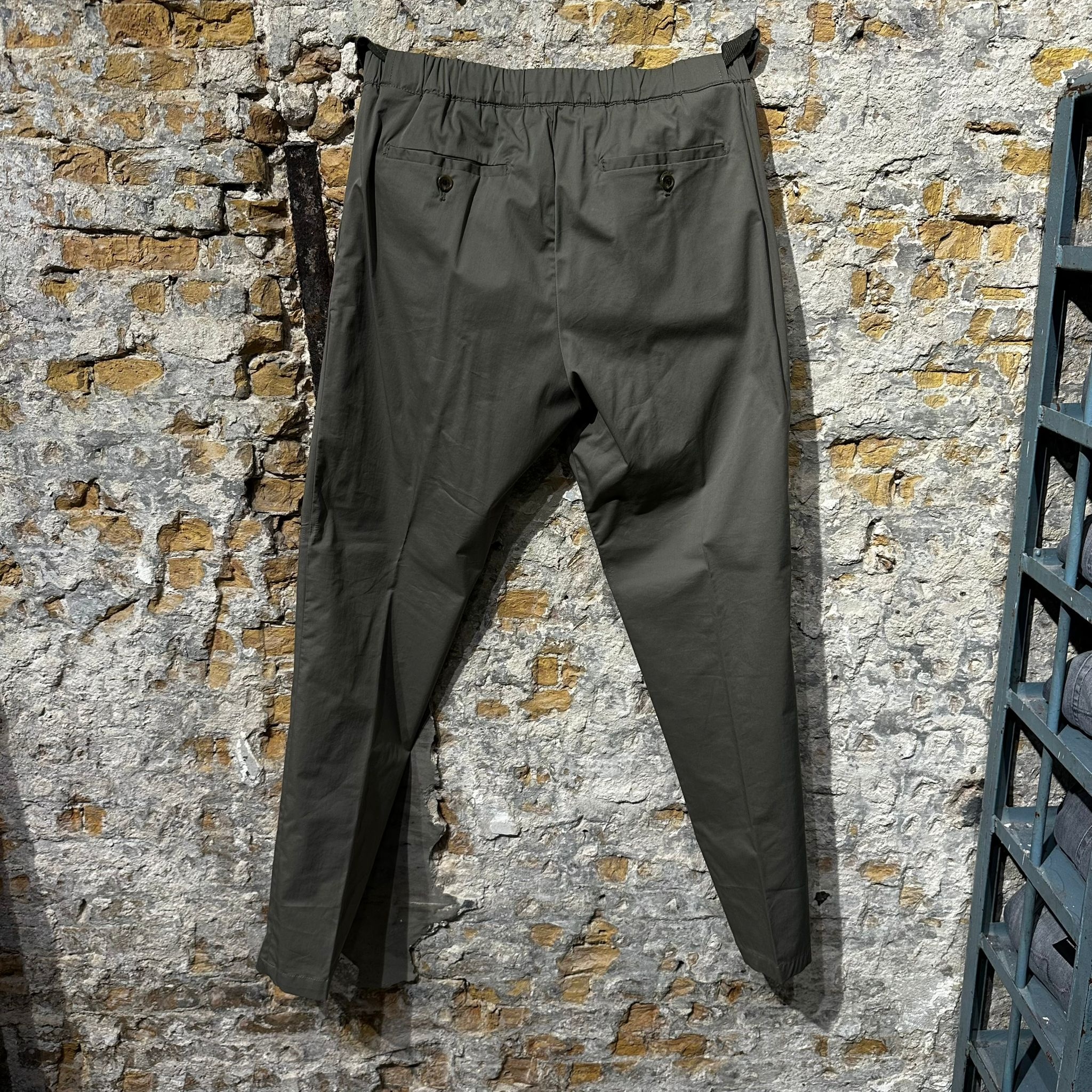 These dark olive trousers offer a modern and refined everyday look.