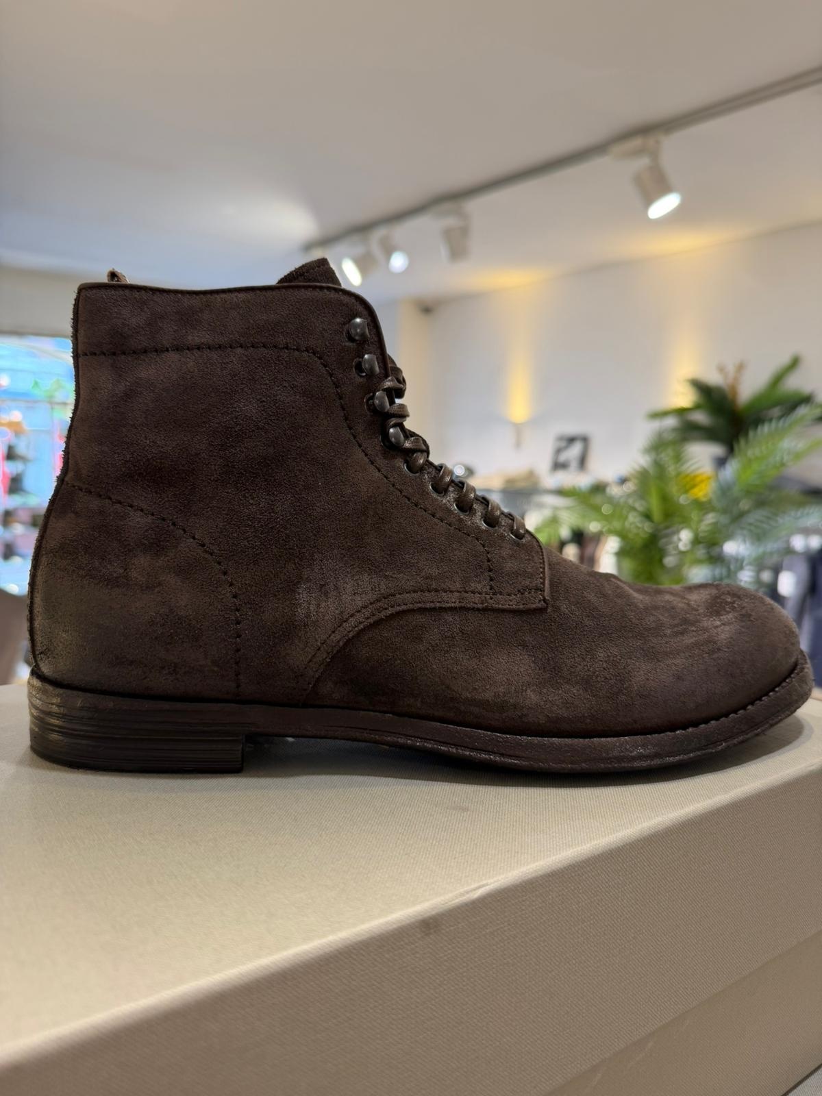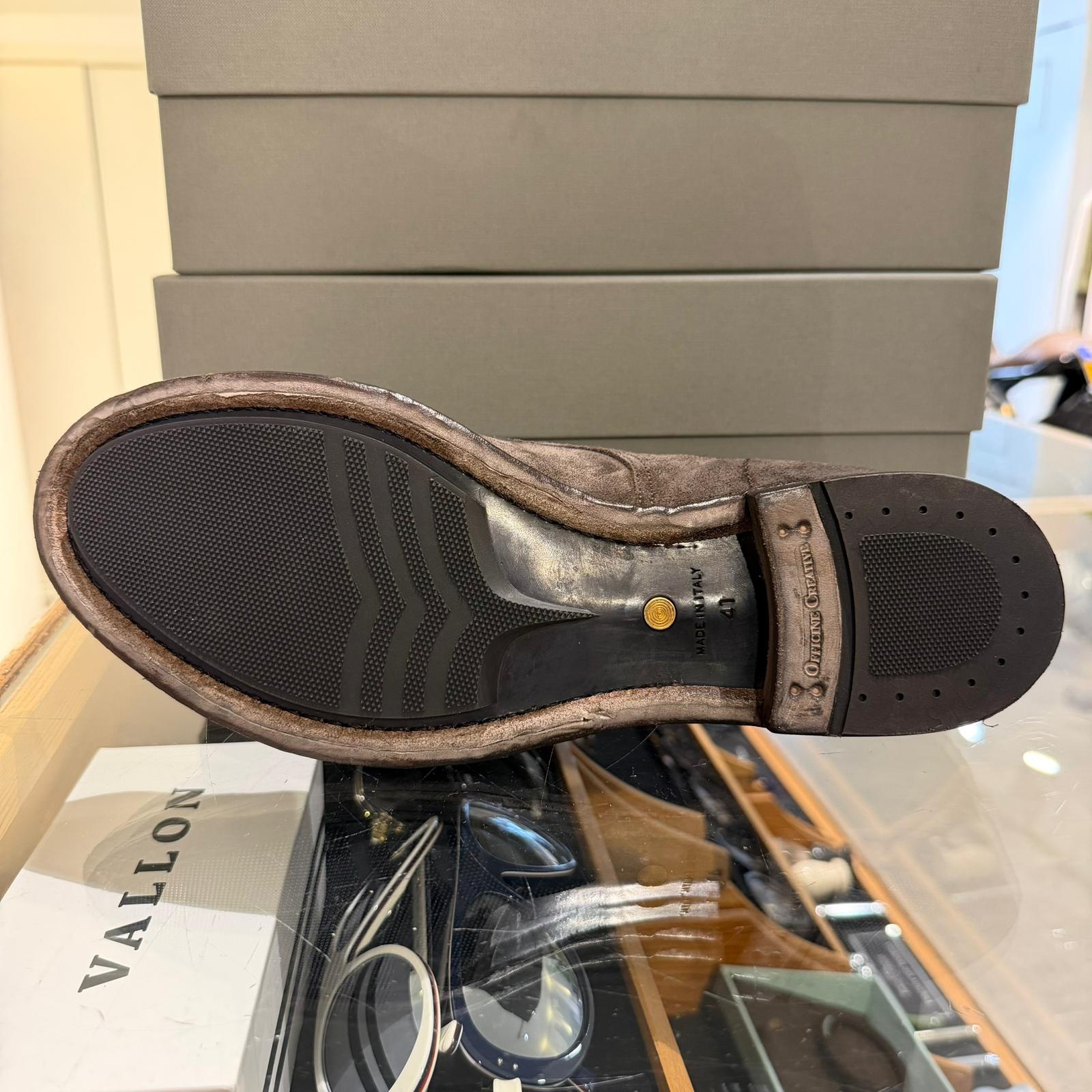 The Anatomia 13 Candy L. Cashemire pepeare handcrafted in Italy from waxed taupe suede, deep-dyed to enhance the rich texture. A leather sole with rubber insert and engraved poetry adds durability and an artistic touch.