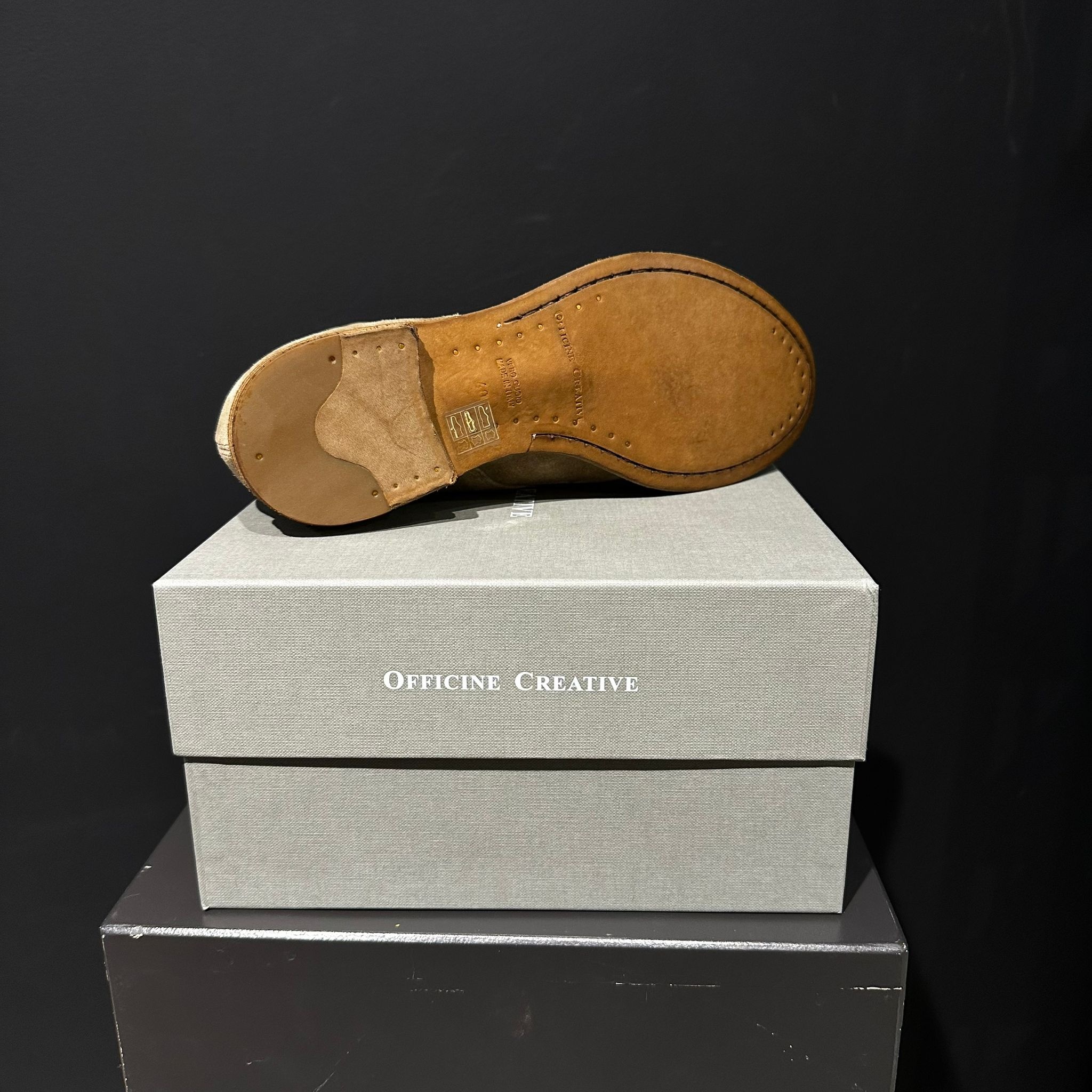 The Archive 513 lace-up boots feature a beige suede upper that gives a relaxed yet refined aesthetic. The minimal stitching and unlined construction provide comfort and a casual look, while the distressed leather sole adds a rustic touch.