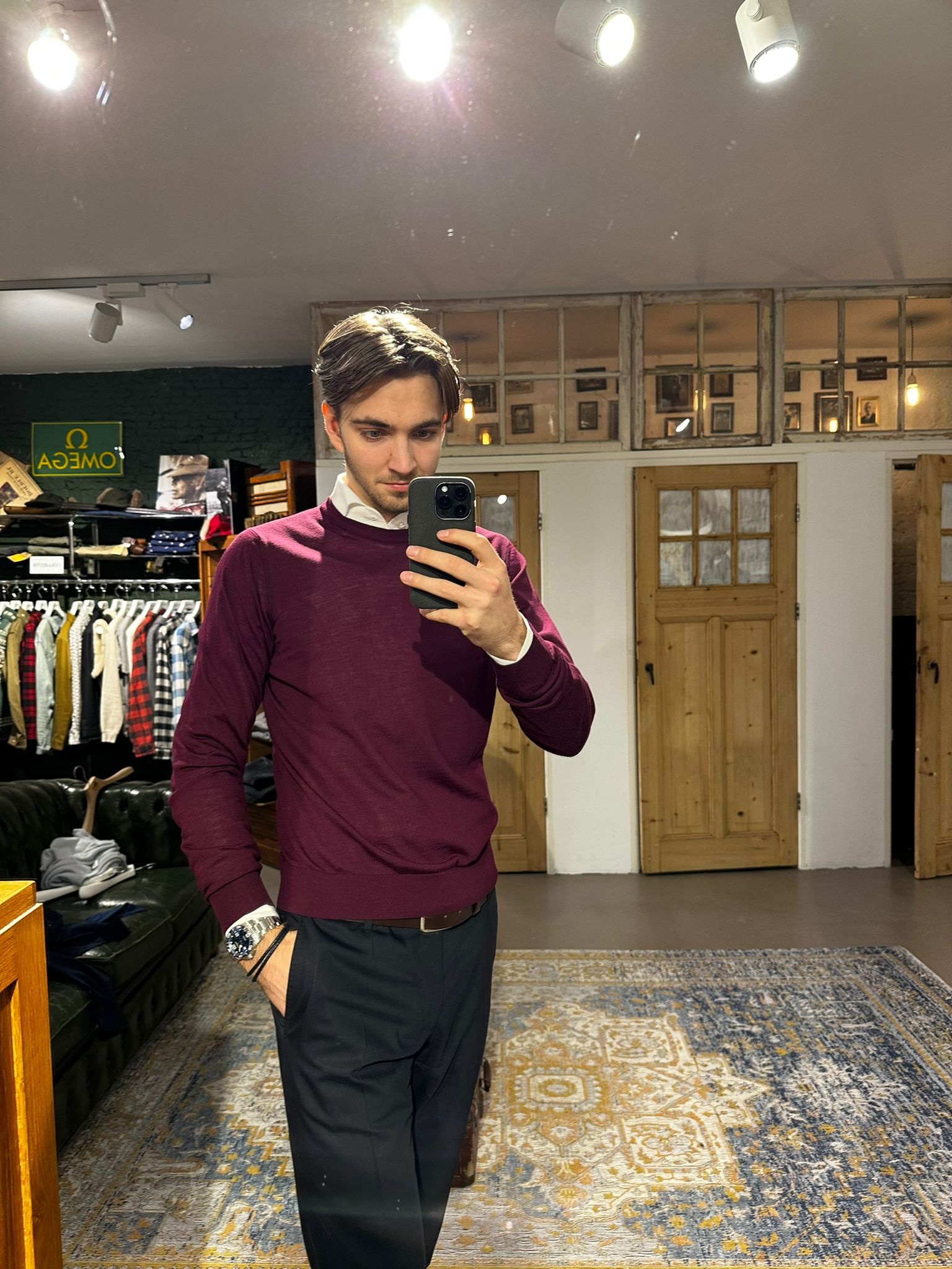Piacenza Crewneck Super Fine Merino Wool Burgendy