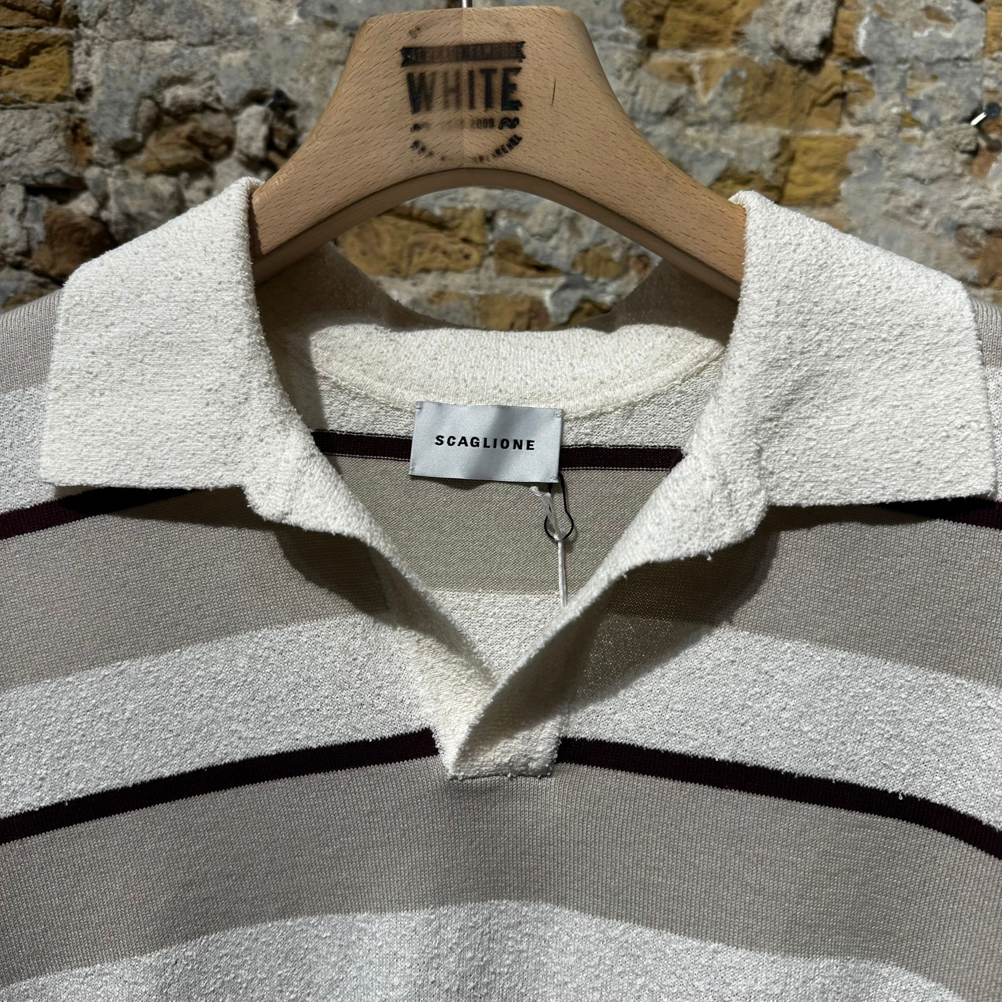 Scaglione Retro Stripe Polo Cream & Burgundy