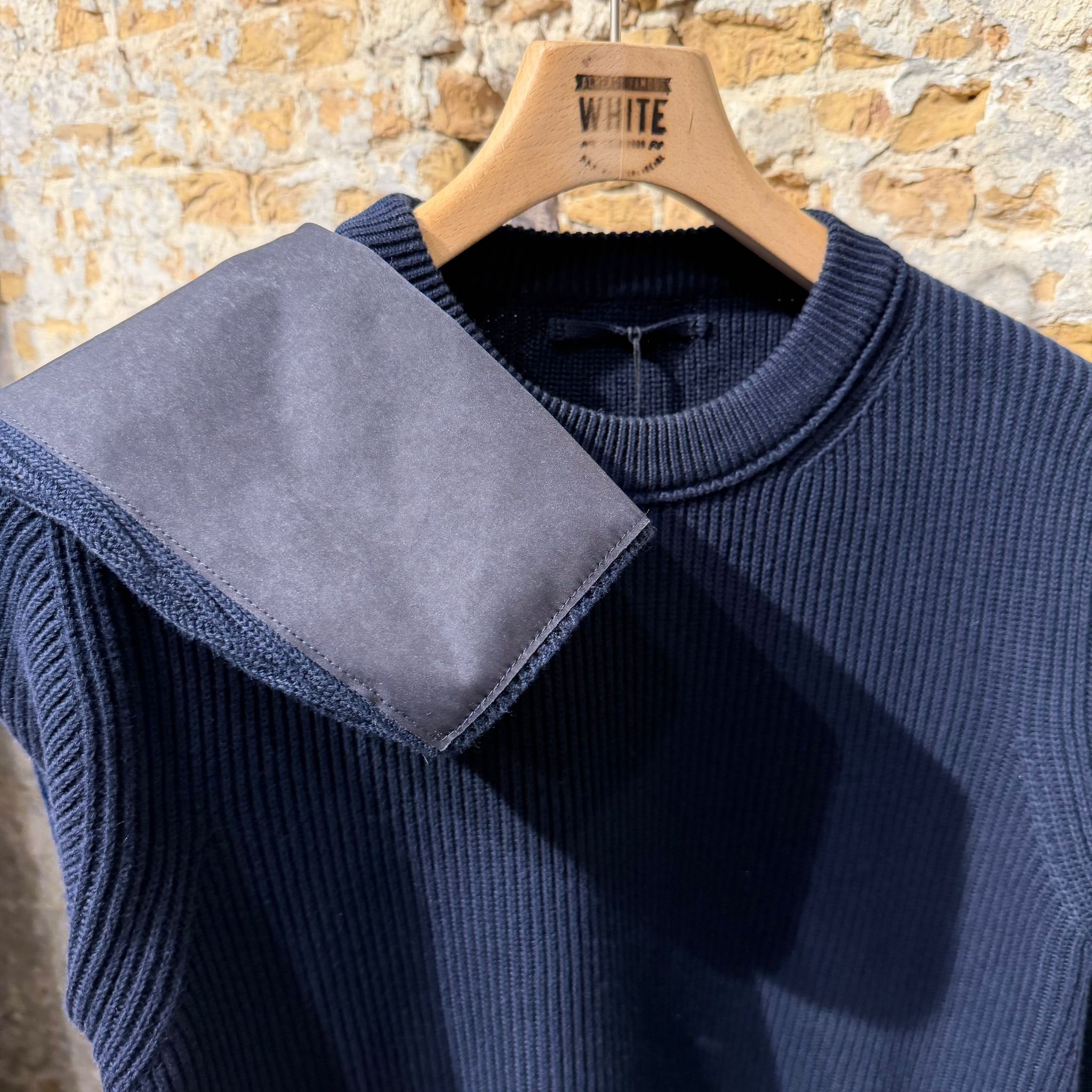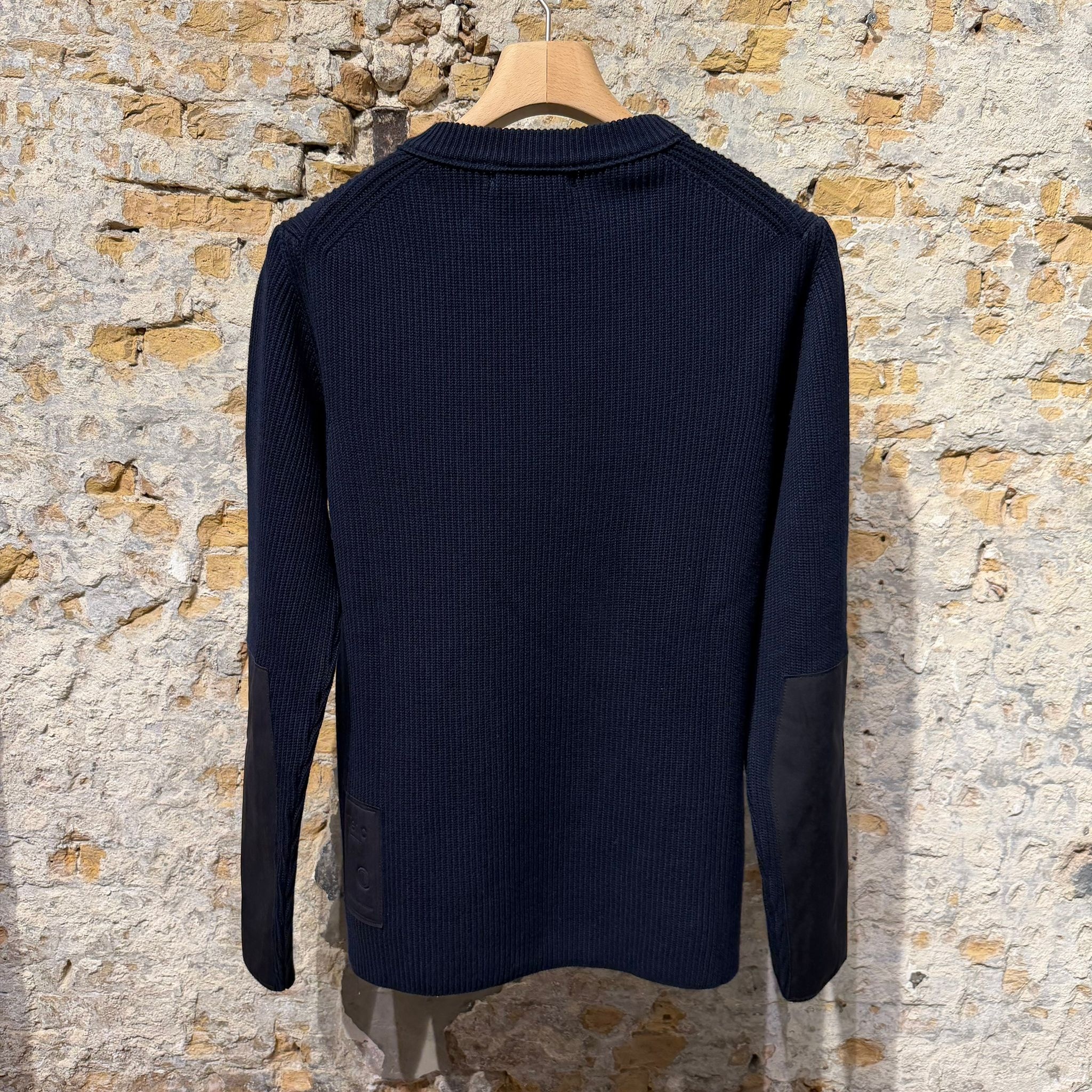 A refined knit that combines comfort with subtle character. Crafted in a structured ribbed knit, the sweater offers warmth while maintaining a clean, modern silhouette. The reinforced elbow patches add both durability and a distinctive detail that gives the piece its unique personality. Finished with a classic crew neck and strong ribbed structure throughout. An easy yet elevated knit that pairs effortlessly with denim or tailored trousers.