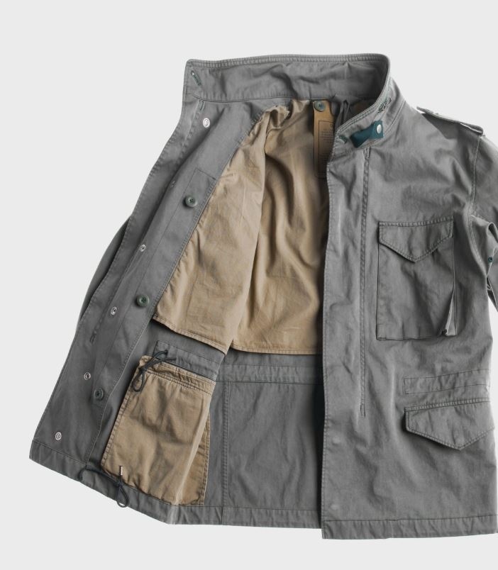 Based on the original 1965 US Army Field Jacket and made from a lightweight cotton/poly blend sourced from Japan. Zip front, press stud packet and drawstring waist. Also feature a stow-away hood in the zip collar.Can be worn with any Ten c liner, bought separately